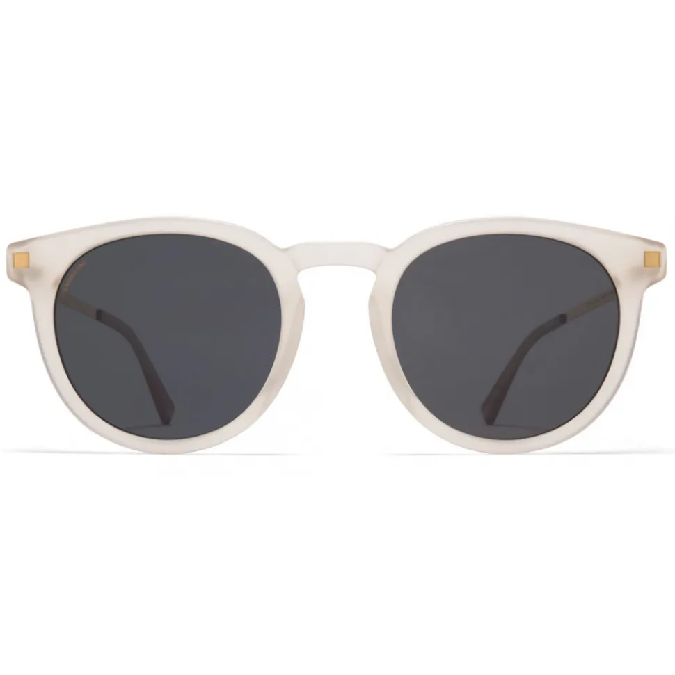 Made of lightweight stainless steel and slender acetate, LAHTI in C101 Matte Champagne/Glossy Gold with Polarised Pro Hi-Con Grey lenses is a panto-shaped sunglass frame from the MYKITA LITE ACETATE collection. Handcrafted in Berlin.