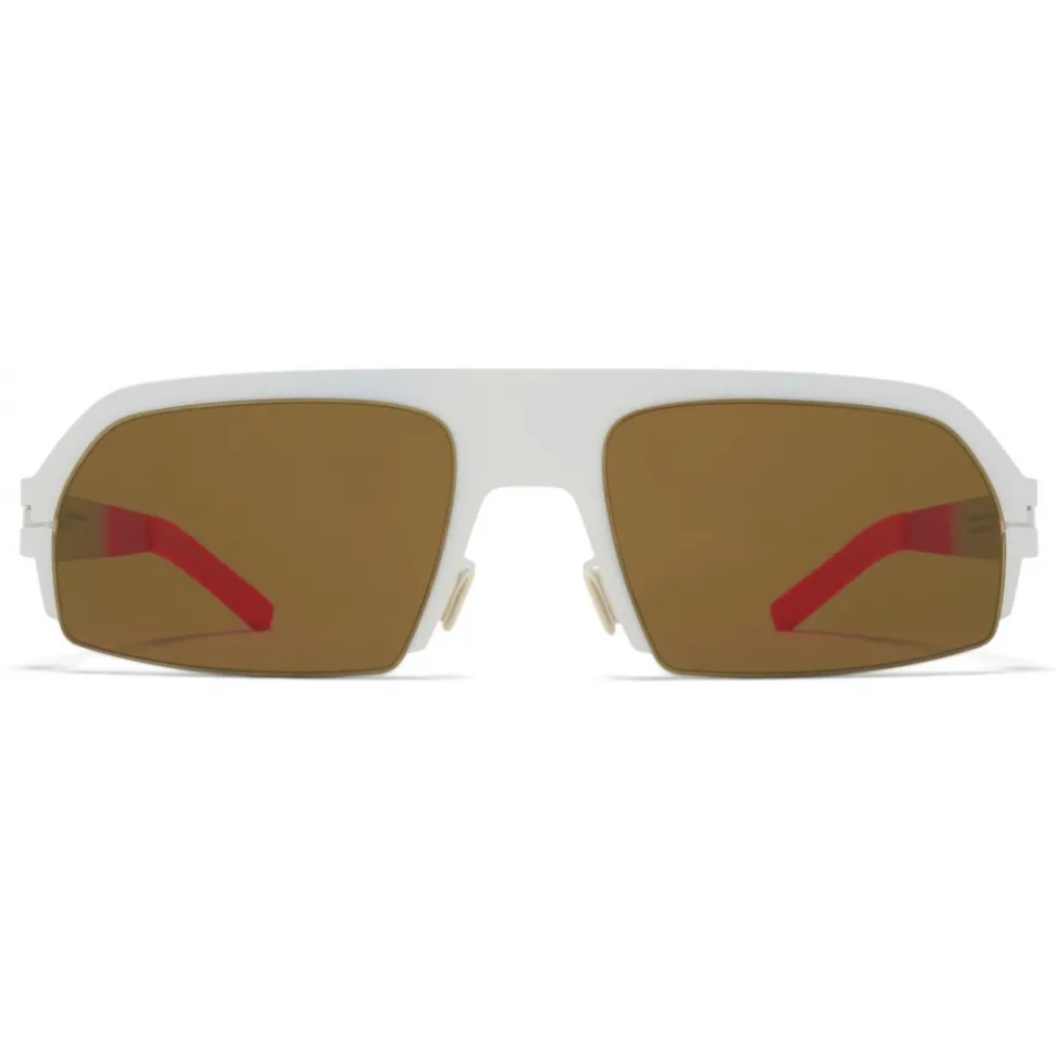 Made of lightweight stainless steel, LOST in Talc/Fluo Red with Raw Brown Solid lenses is a square-shaped sunglass frame with a handlacquered airbrush surface from the MYKITA & BERNHARD WILLHELM collection. Handcrafted in Berlin.