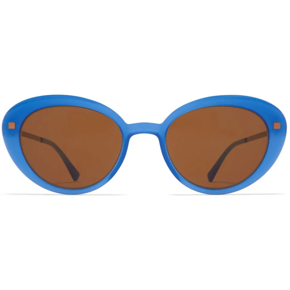 Made of lightweight stainless steel and slender acetate, LUAVA in C88 Misty Blue/Shiny Copper with Brown Solid lenses is a oval-shaped sunglass frame from the MYKITA LITE ACETATE collection. Handcrafted in Berlin.