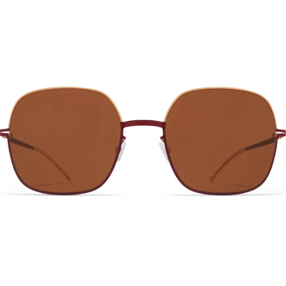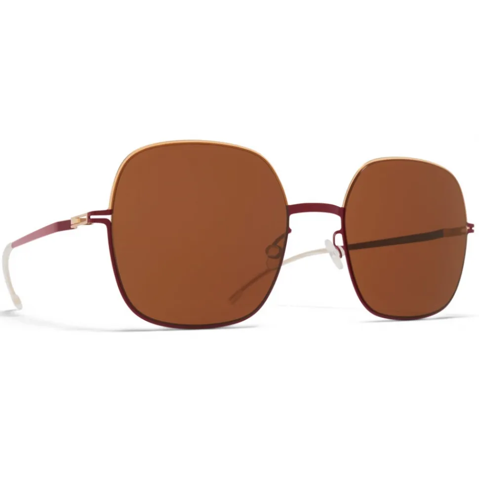 Made of lightweight stainless steel, MAGDA in Champagne Gold/Cranberry with Brown Solid lenses is a square-shaped sunglass frame from the MYKITA DECADES collection. Handcrafted in Berlin.