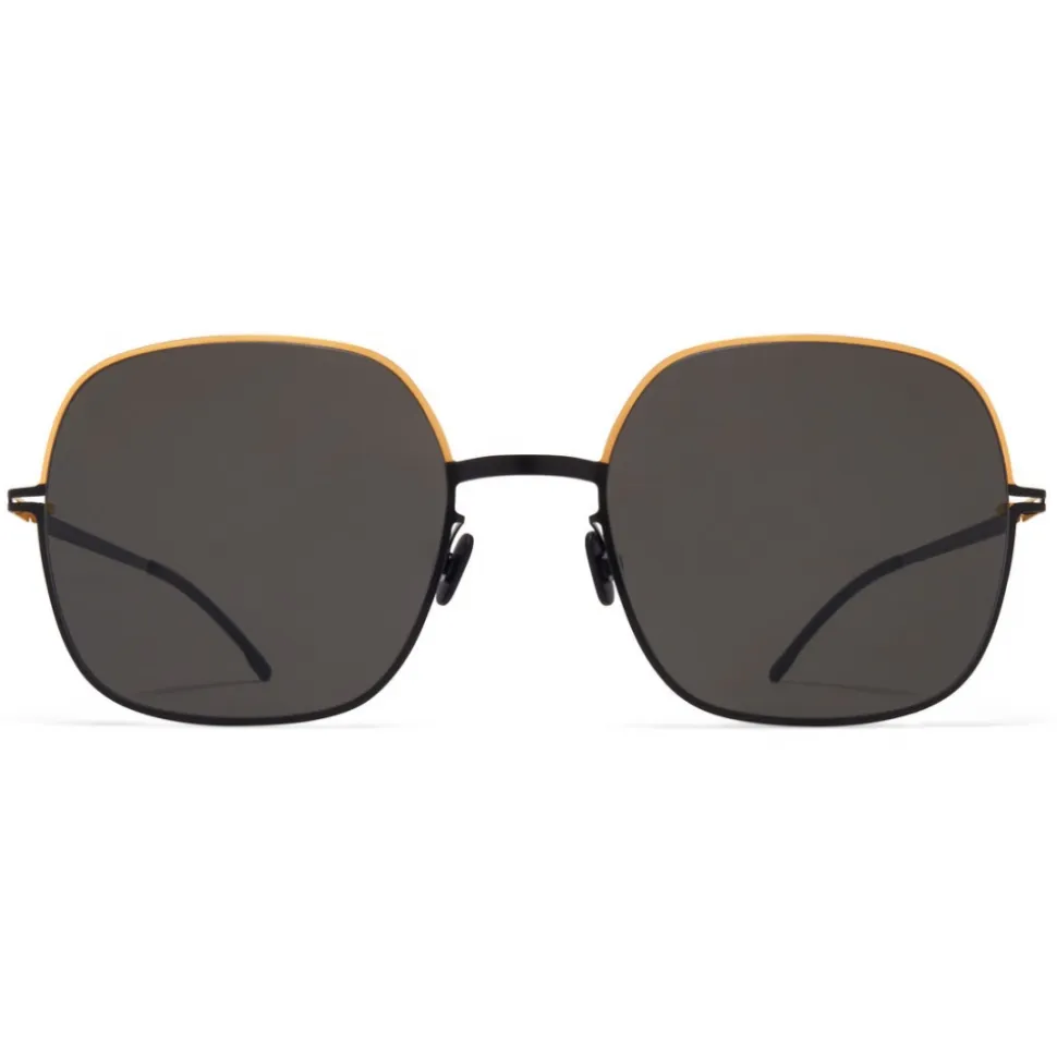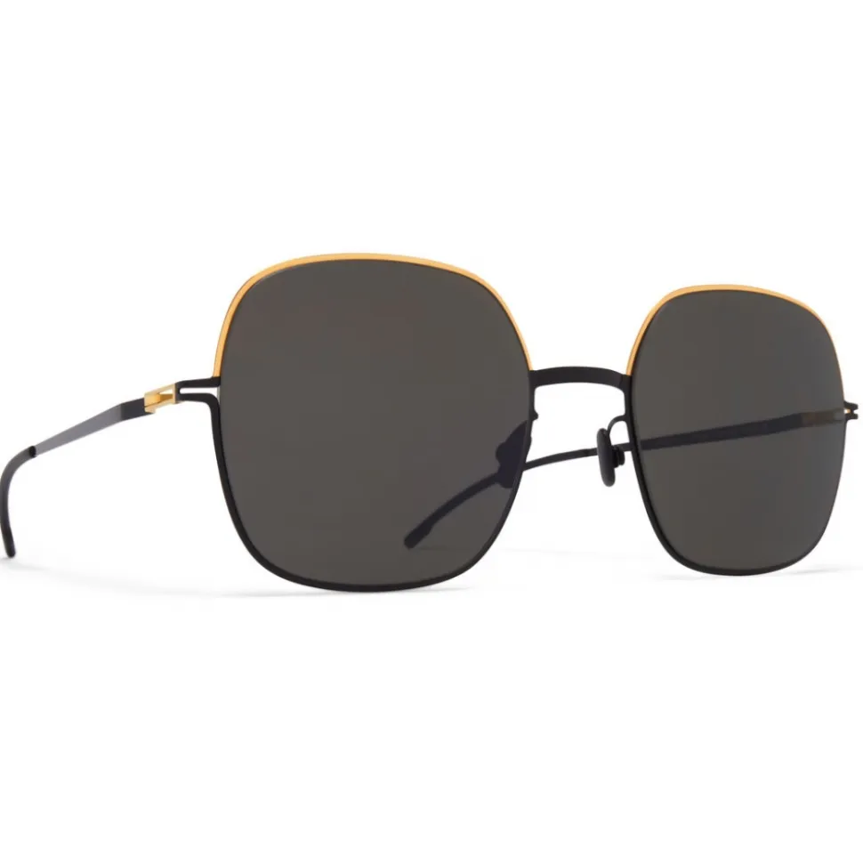 Made of lightweight stainless steel, MAGDA in Gold/Jet Black with Dark Grey Solid lenses is a square-shaped sunglass frame from the MYKITA DECADES collection. Handcrafted in Berlin.