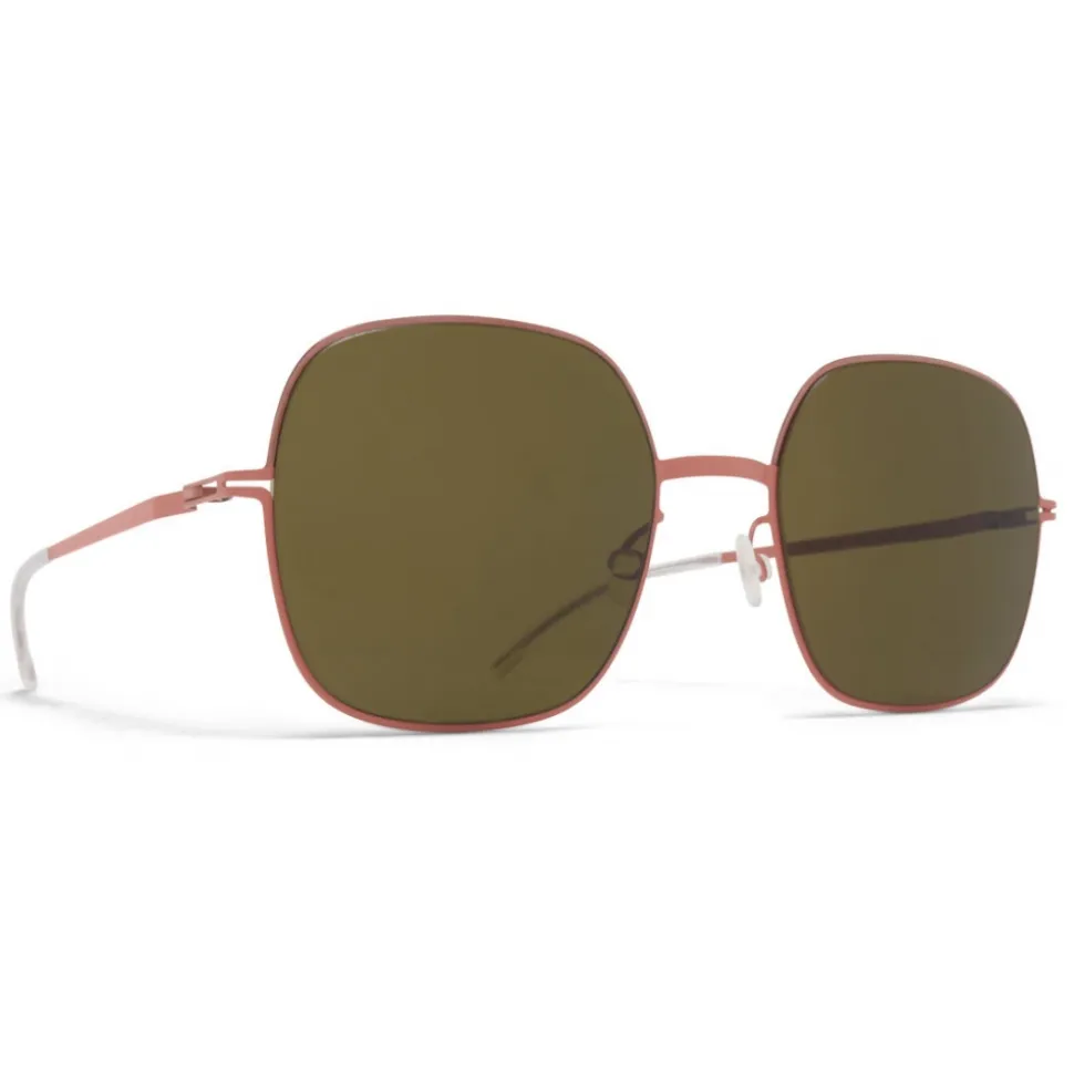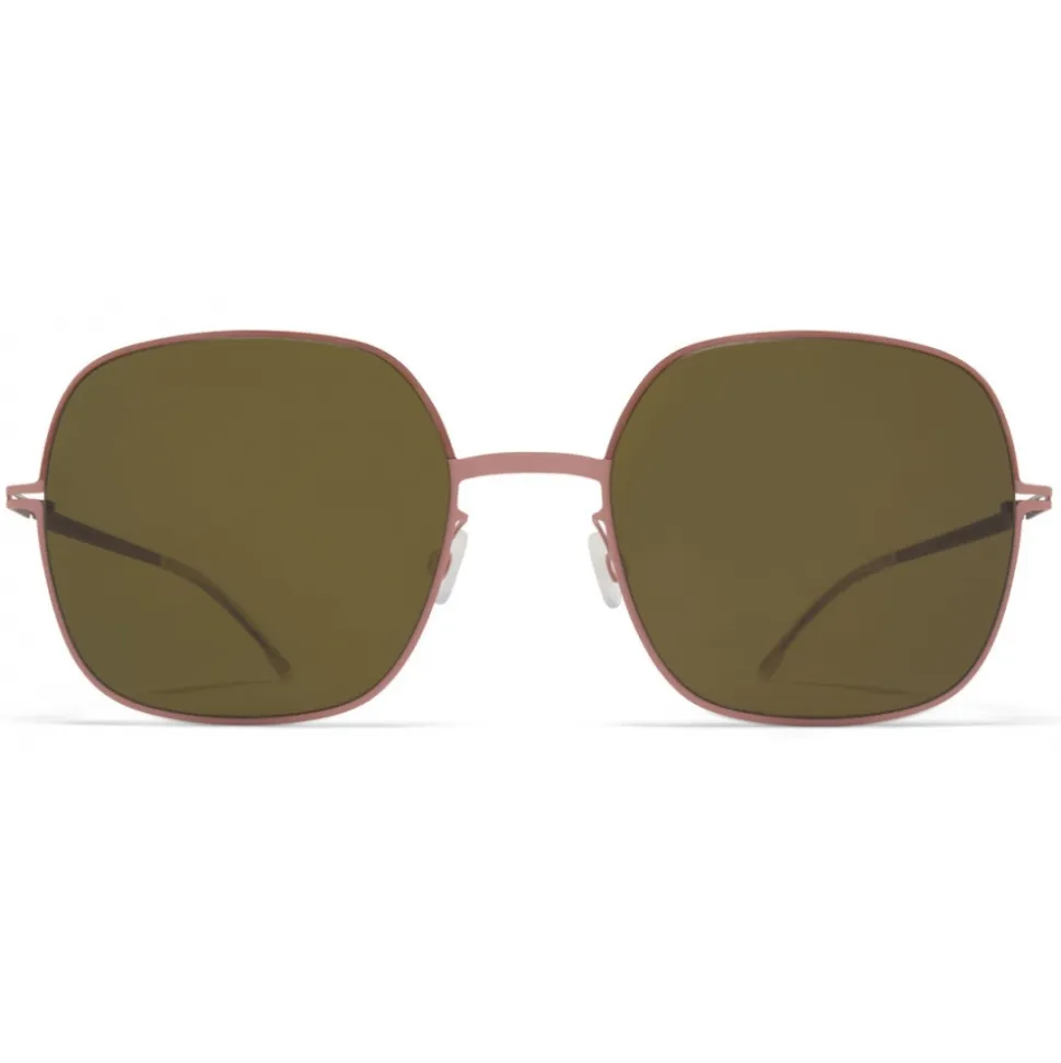 Made of lightweight stainless steel, MAGDA in Purple Bronze/Pink Clay with Raw Green Solid lenses is a square-shaped sunglass frame from the MYKITA DECADES collection. Handcrafted in Berlin.