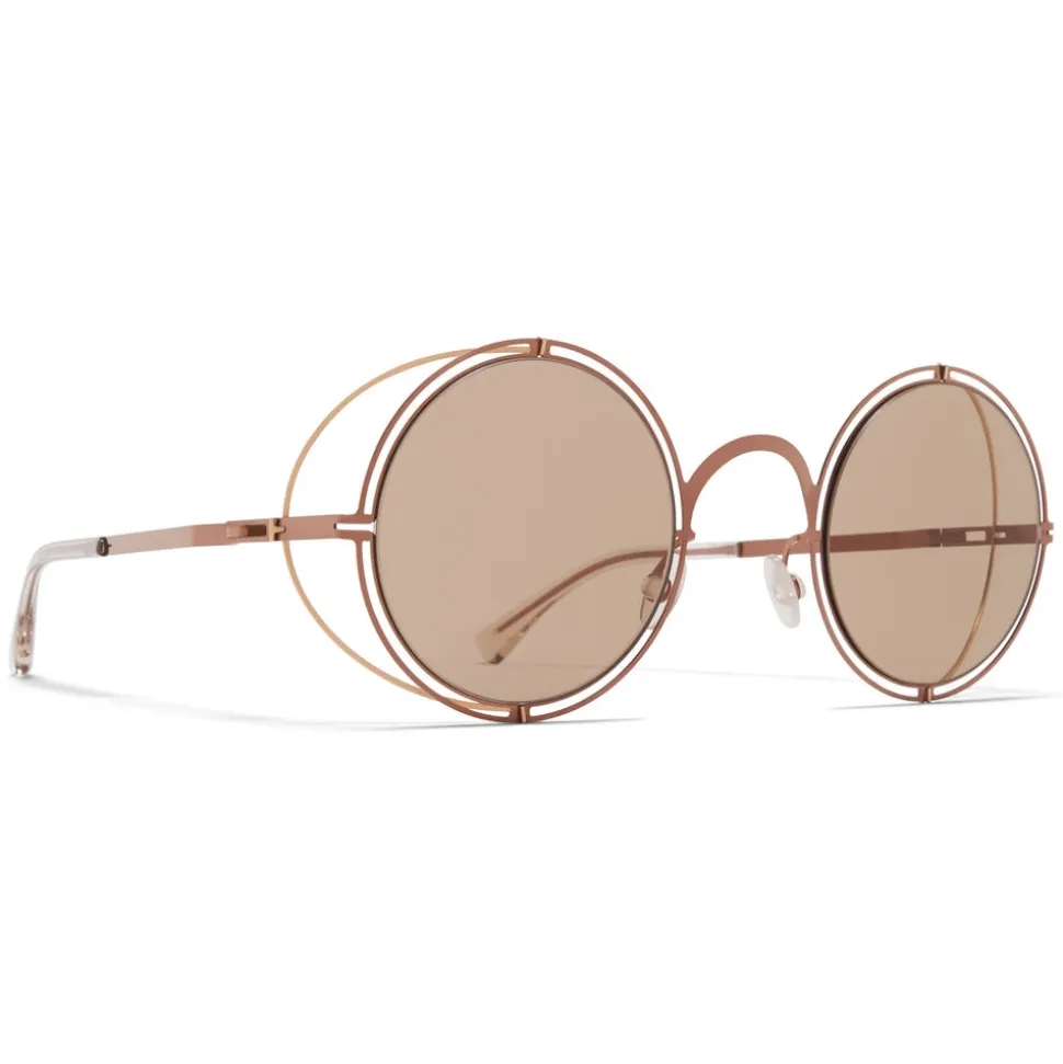 Made of lightweight stainless steel with functional details in acetate, MMCRAFT001 in Shiny Copper with Light Brown Solid lenses is a round-shaped sunglass frame from the MYKITA + MAISON MARGIELA collection. Handcrafted in Berlin.