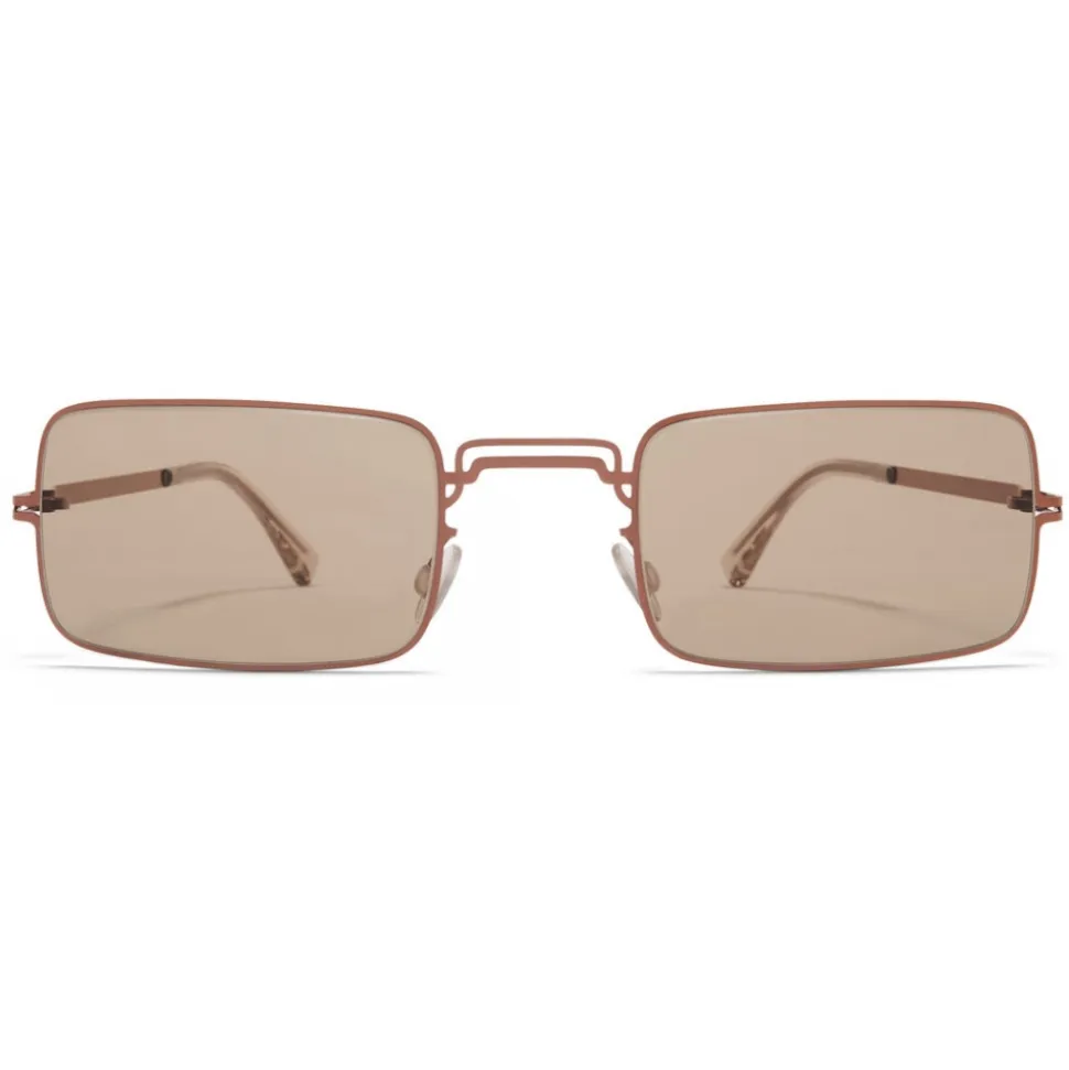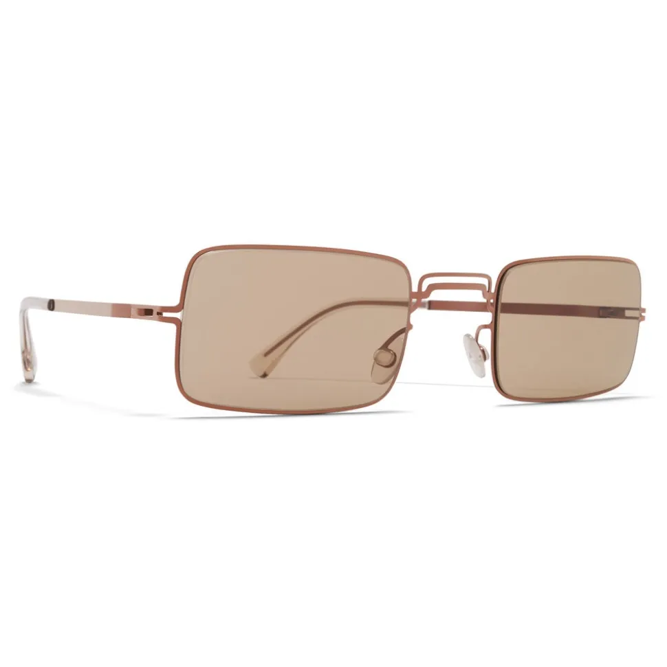 Made of lightweight stainless steel with functional details in acetate, MMCRAFT003 in Shiny Copper with Light Brown Solid lenses is a square-shaped sunglass frame from the MYKITA + MAISON MARGIELA collection. Handcrafted in Berlin.
