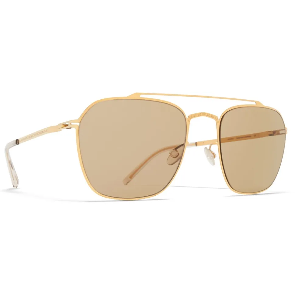 Made of lightweight stainless steel with functional details in acetate, MMCRAFT006 in Glossy Gold with Light Brown Solid lenses is a square-shaped sunglass frame from the MYKITA + MAISON MARGIELA collection. Handcrafted in Berlin.