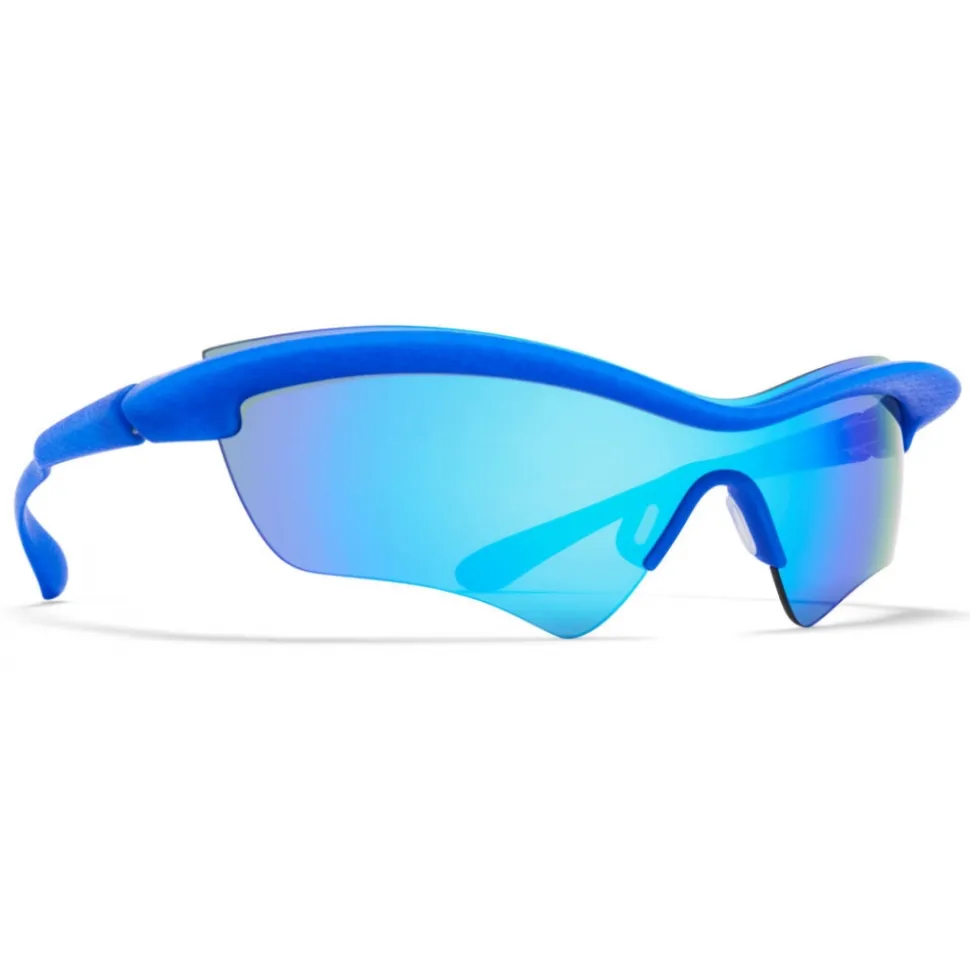 Made of lightweight stainless steel, MMECHO005 in MD30 International Blue with Turquoise Flash MM Shield lenses is a butterfly-shaped sunglass frame from the MYKITA + MAISON MARGIELA collection. Handcrafted in Berlin.