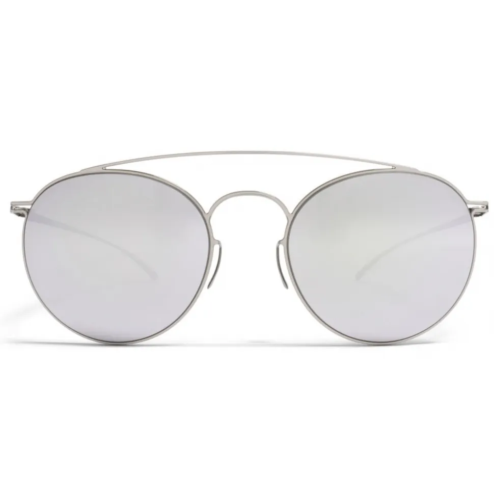 Made of lightweight stainless steel, MMESSE006 in E1 Silver with Silver Flash lenses is an aviator-shaped sunglass frame from the MYKITA + MAISON MARGIELA collection. Handcrafted in Berlin.