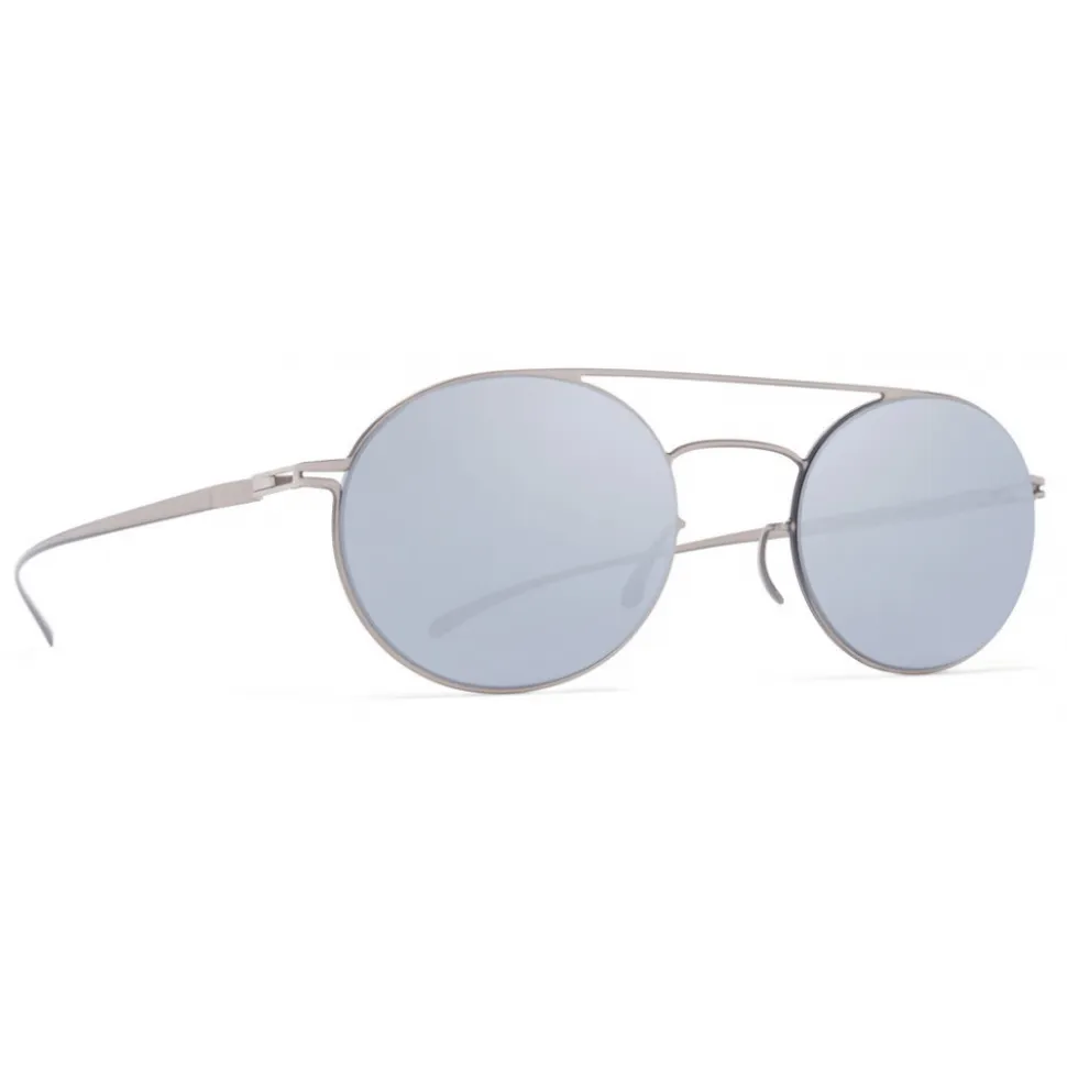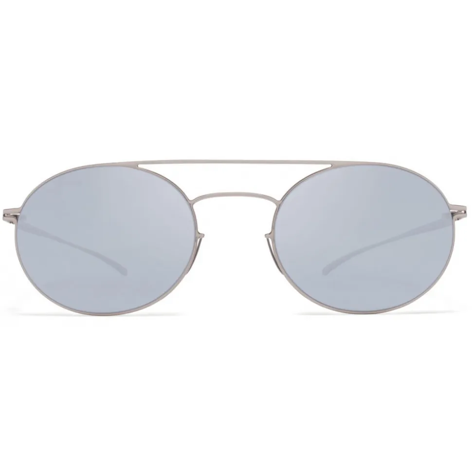 Made of lightweight stainless steel, MMESSE019 in E1 Silver with Silver Flash lenses is an aviator-shaped sunglass frame from the MYKITA + MAISON MARGIELA collection. Handcrafted in Berlin.