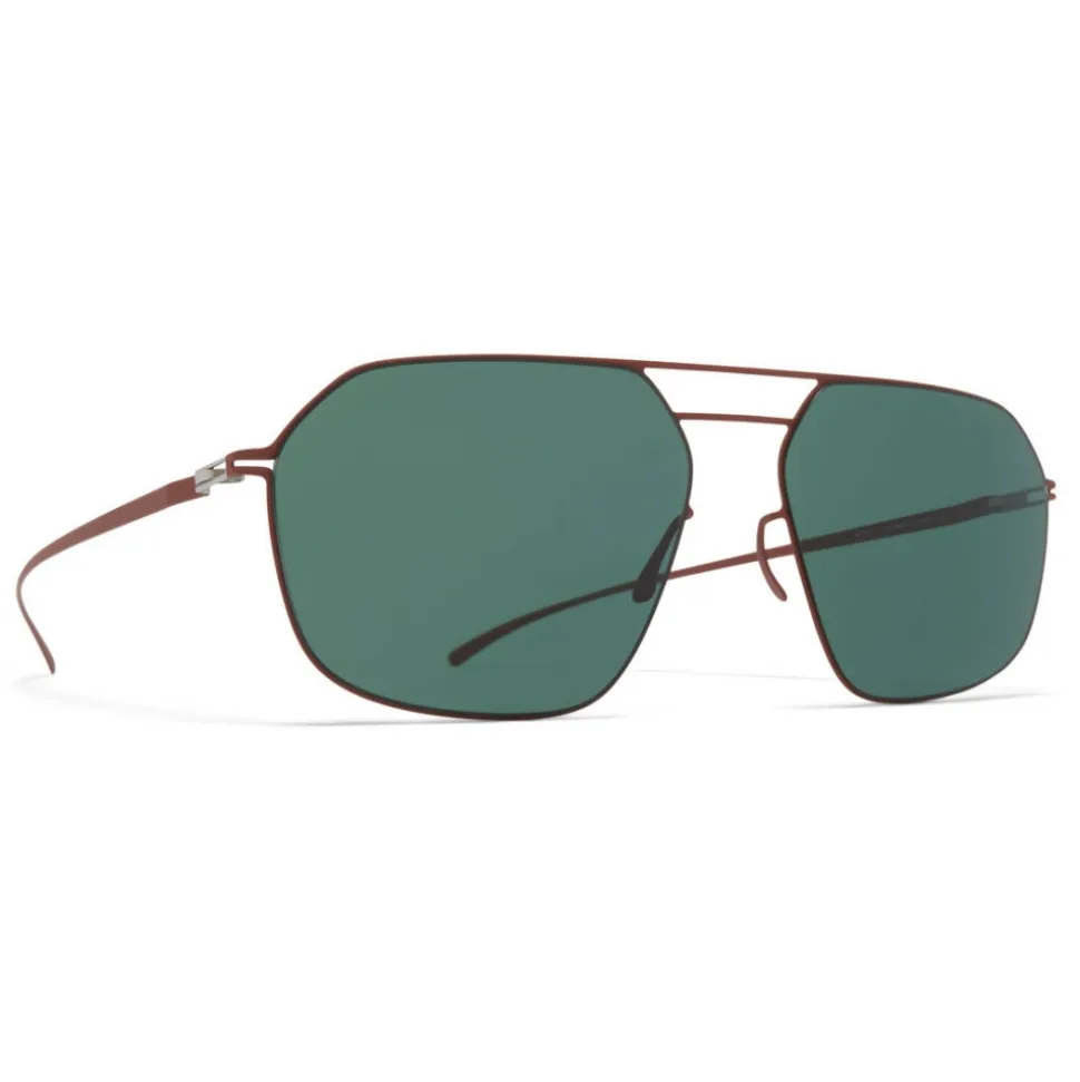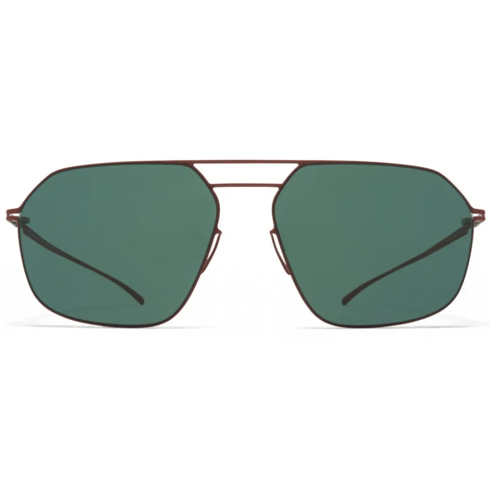 Made of lightweight stainless steel, MMESSE026 in E20 Matte Brown with Dark Green Solid lenses is an aviator-shaped sunglass frame from the MYKITA + MAISON MARGIELA collection. Handcrafted in Berlin.