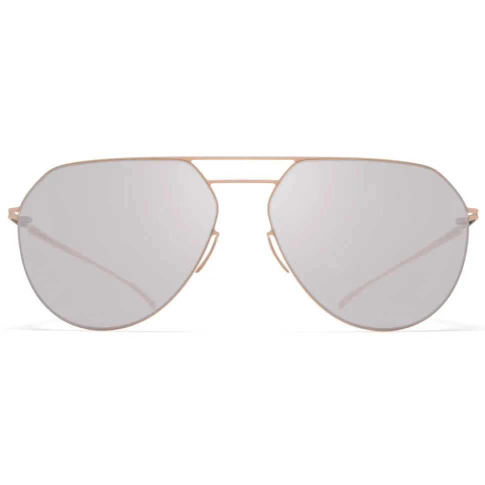 Made of lightweight stainless steel, MMESSE027 in E9 Nude with Warm Grey Flash lenses is an aviator-shaped sunglass frame from the MYKITA + MAISON MARGIELA collection. Handcrafted in Berlin.