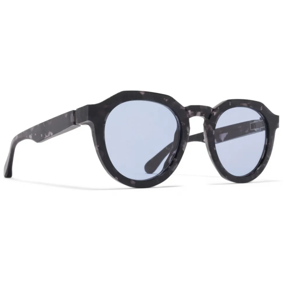 Made of unpolished acetate, MMRAW007 in Raw Black Havana with Sky Blue Solid lenses is a panto-shaped sunglass frame from the MYKITA + MAISON MARGIELA collection. The visible traces of the milling process make each model unique. Handcrafted in Berlin.