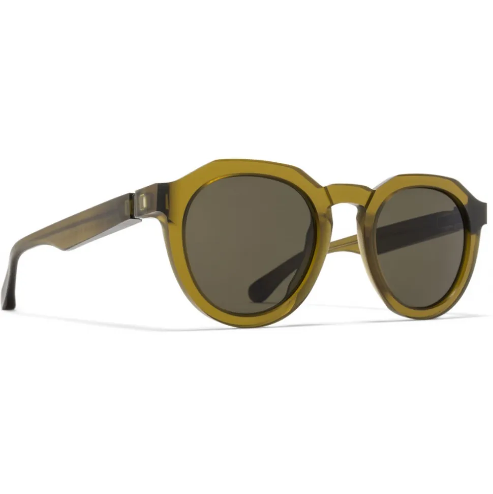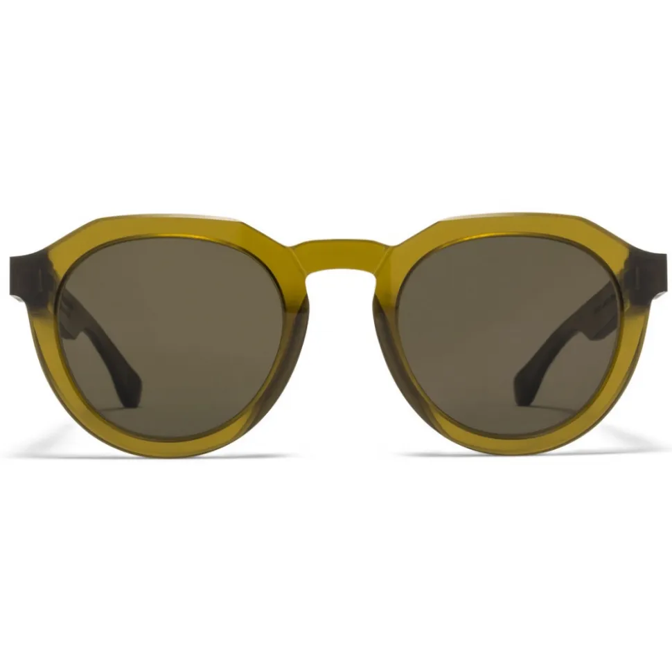 Made of unpolished acetate, MMRAW007 in Raw Peridot with Raw Green Solid lenses is a panto-shaped sunglass frame from the MYKITA + MAISON MARGIELA collection. The visible traces of the milling process make each model unique. Handcrafted in Berlin.
