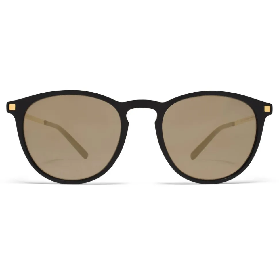 Made of lightweight stainless steel and slender acetate, NUKKA in Black/Glossy Gold with Brilliant Grey Solid lenses is a panto-shaped sunglass frame from the MYKITA LITE collection. Handcrafted in Berlin.