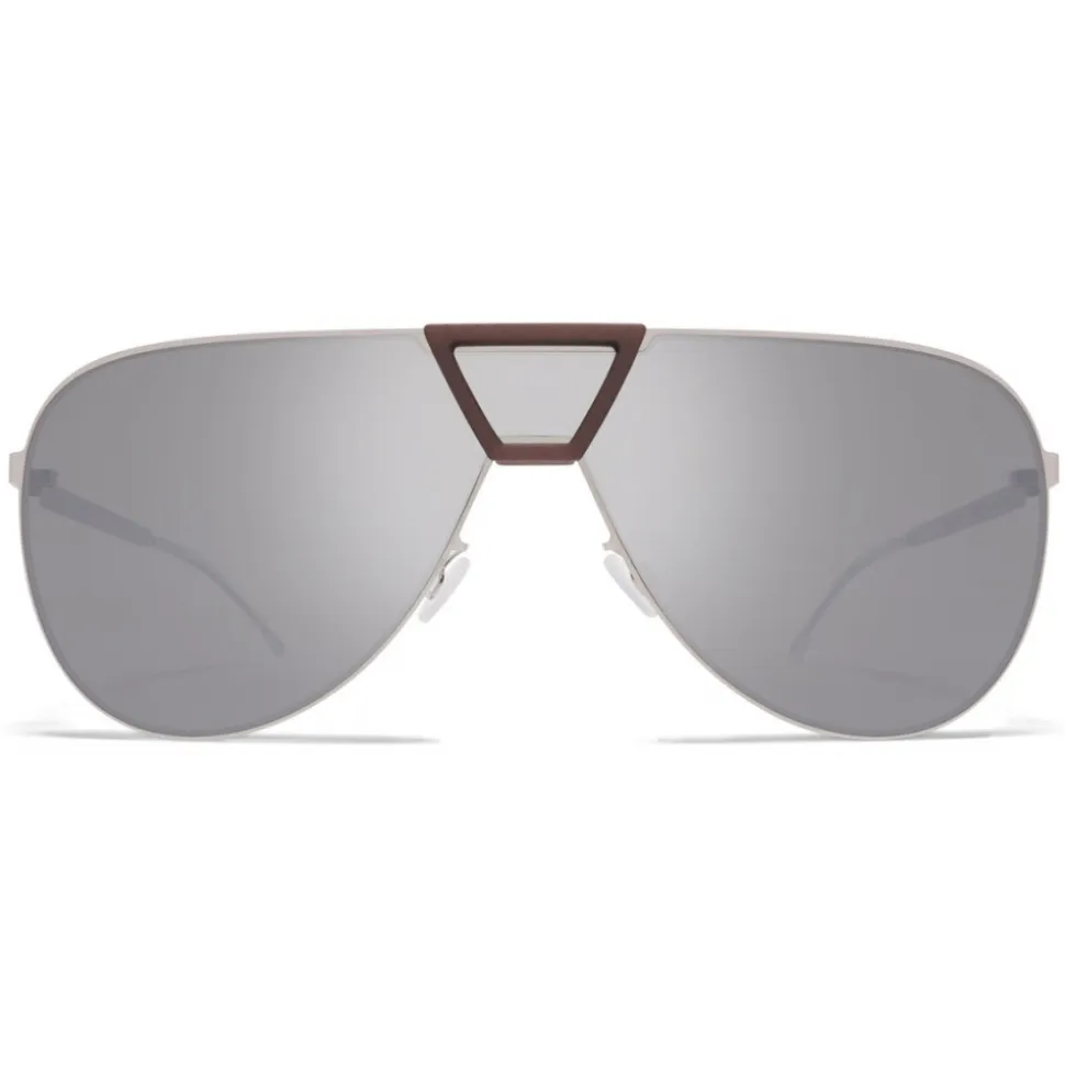 Made of MYLON – an exceptionally light and durable material – PEPPER in MH18 Taupe Grey/Shiny Silver with Silver Flash Shield lenses is an aviator-shaped sunglass frame from the MYKITA MYLON collection. Handcrafted in Berlin.