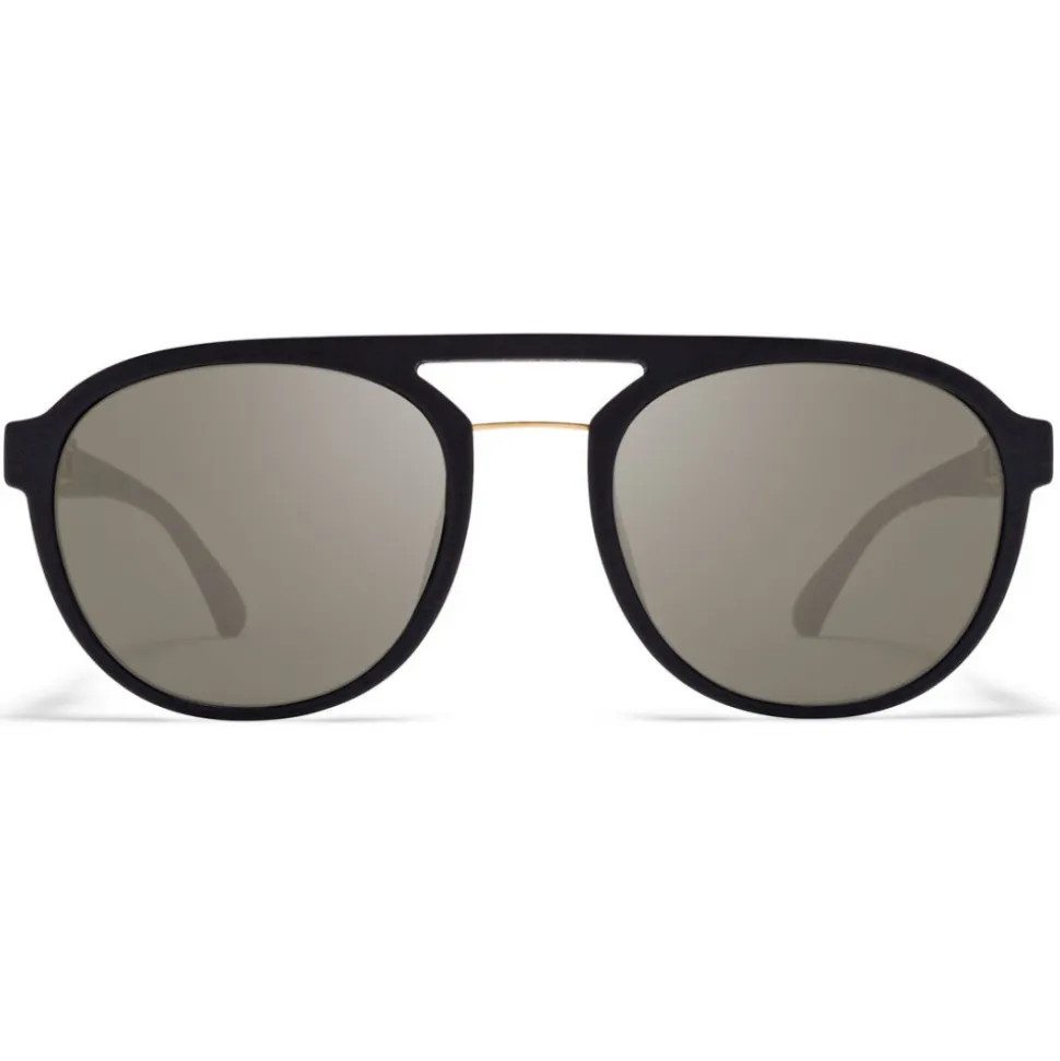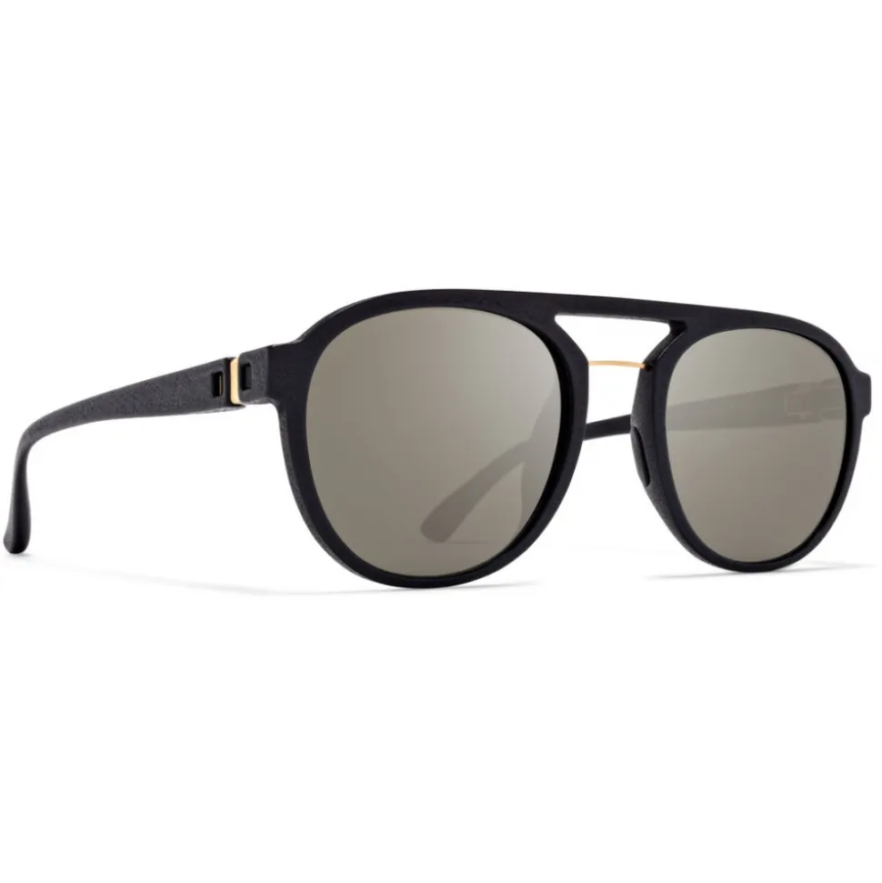 Made of MYLON – an exceptionally light and durable material – STING in MMT3 Pitch Black/Glossy Gold with Gun Metal Flash lenses is an aviator-shaped sunglass frame from the MYKITA MYLON collection. Handcrafted in Berlin.