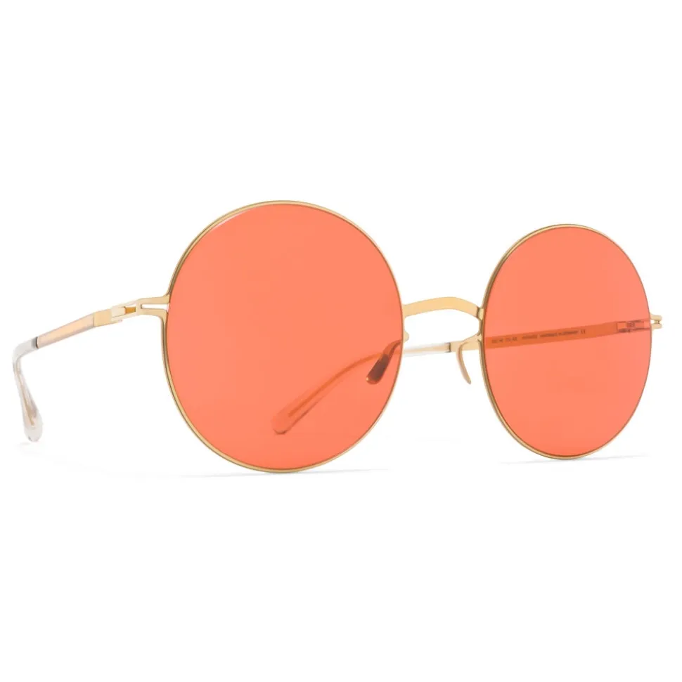 Made of lightweight stainless steel, STUDIO 5.3 in POW8 Glossy Gold with Ultra Red Solid lenses is a round-shaped sunglass frame from the MYKITA STUDIO collection. Handcrafted in Berlin.