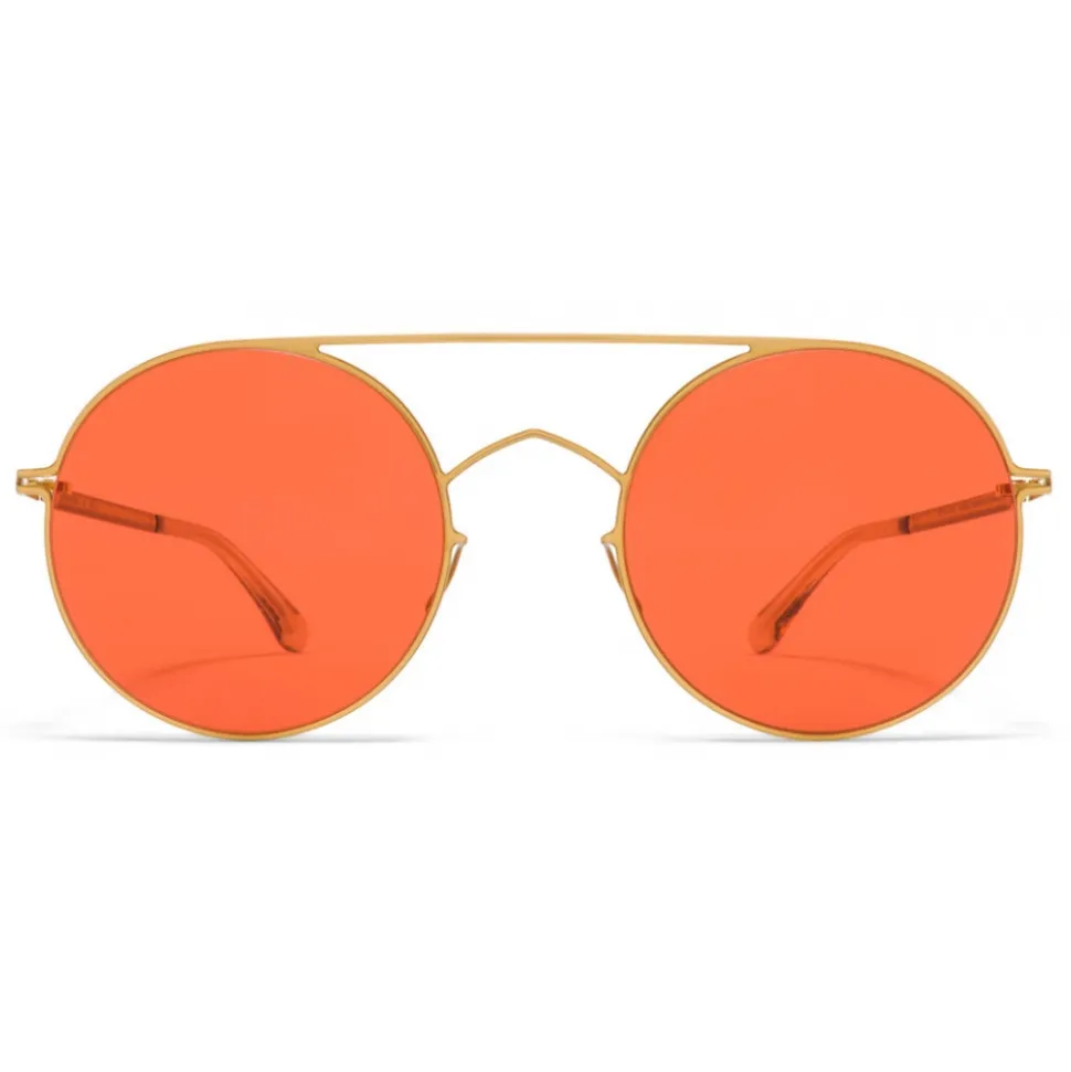 Made of lightweight stainless steel, STUDIO 5.4 in POW8 Glossy Gold with Ultra Red Solid lenses is an aviator-shaped sunglass frame from the MYKITA STUDIO collection. Handcrafted in Berlin.