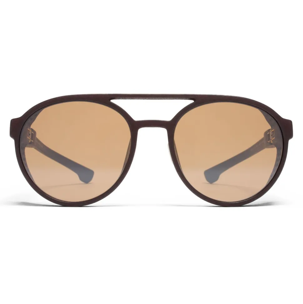 Made of MYLON – an exceptionally light and durable material – TARGA in MD22 Ebony Brown with Sienna Brown Flash lenses is a round-shaped sunglass frame from the MYKITA MYLON collection. Handcrafted in Berlin.