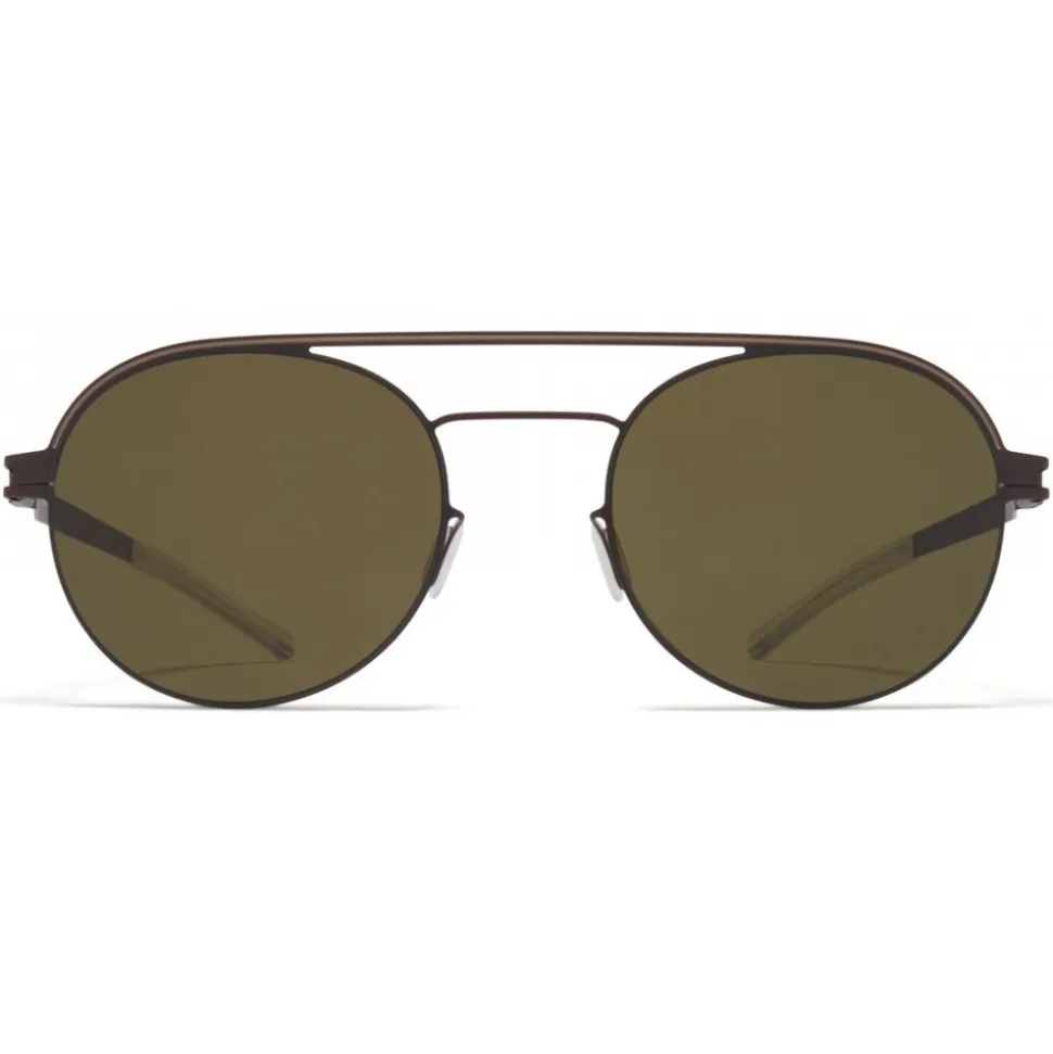 Made of lightweight stainless steel, TURNER in Dark Brown/Dark Sand with Raw Green Solid lenses is a oval-shaped sunglass frame from the MYKITA NO1 collection. Handcrafted in Berlin.