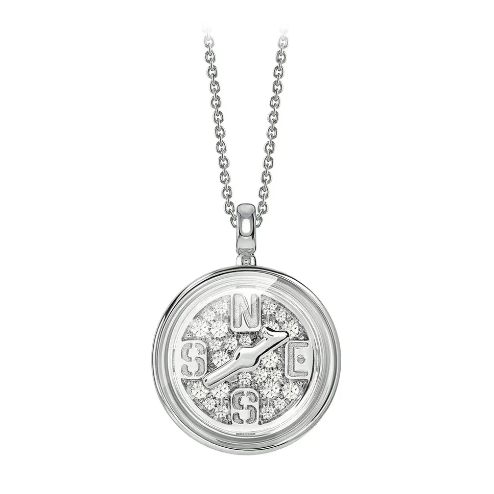 NESS1 – Compass Necklace 9kt White Gold and Diamonds – Time Collection – Artisan Necklace – Luxury High Quality