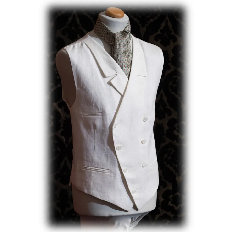 Nicolao Atelier – 30’s Vest – White Linen Man – Vest – Made in Italy – Luxury Exclusive Collection