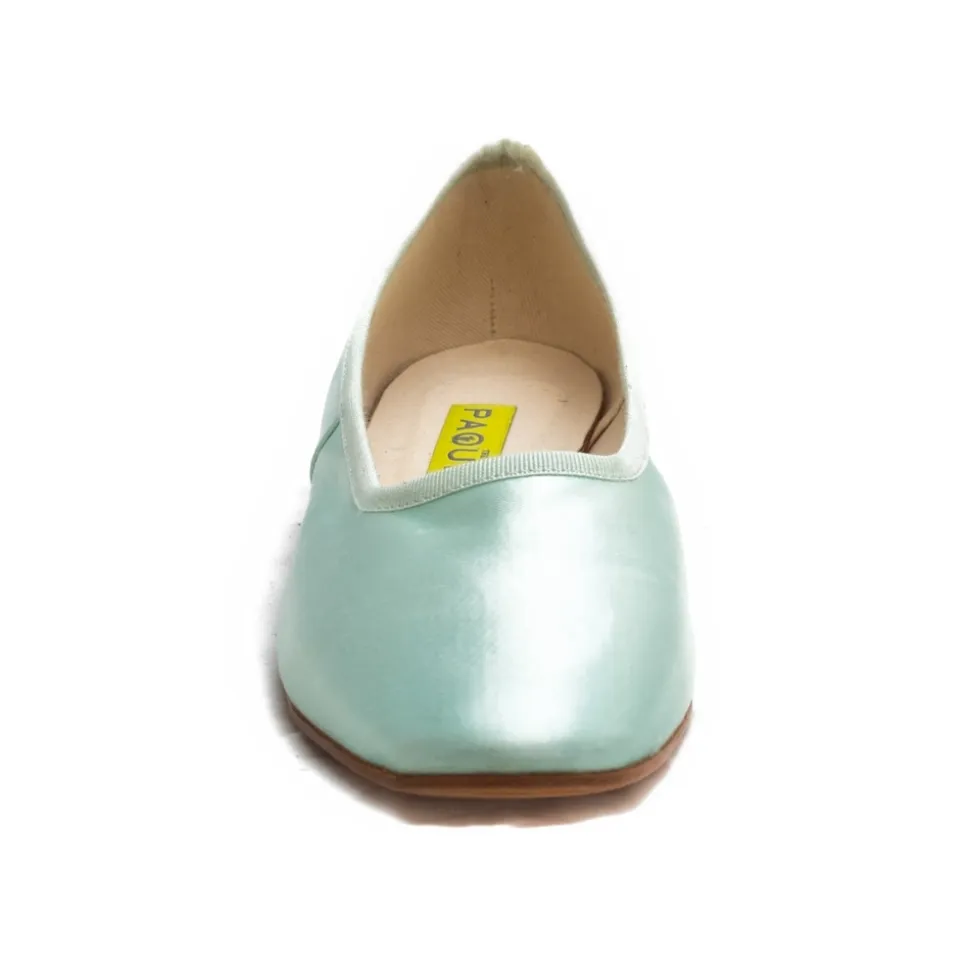 Satin shoes in Tiffany blue color, real leather lining and leather sole, designed by Stefano Nicolao.