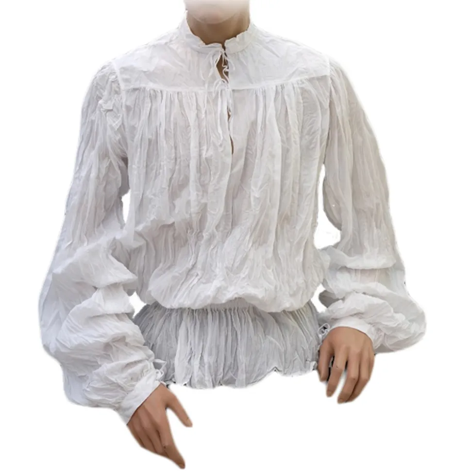 ‘400 cotton gauze shirt with collar and cuffs with” lettuces” full-length drawstring closure.