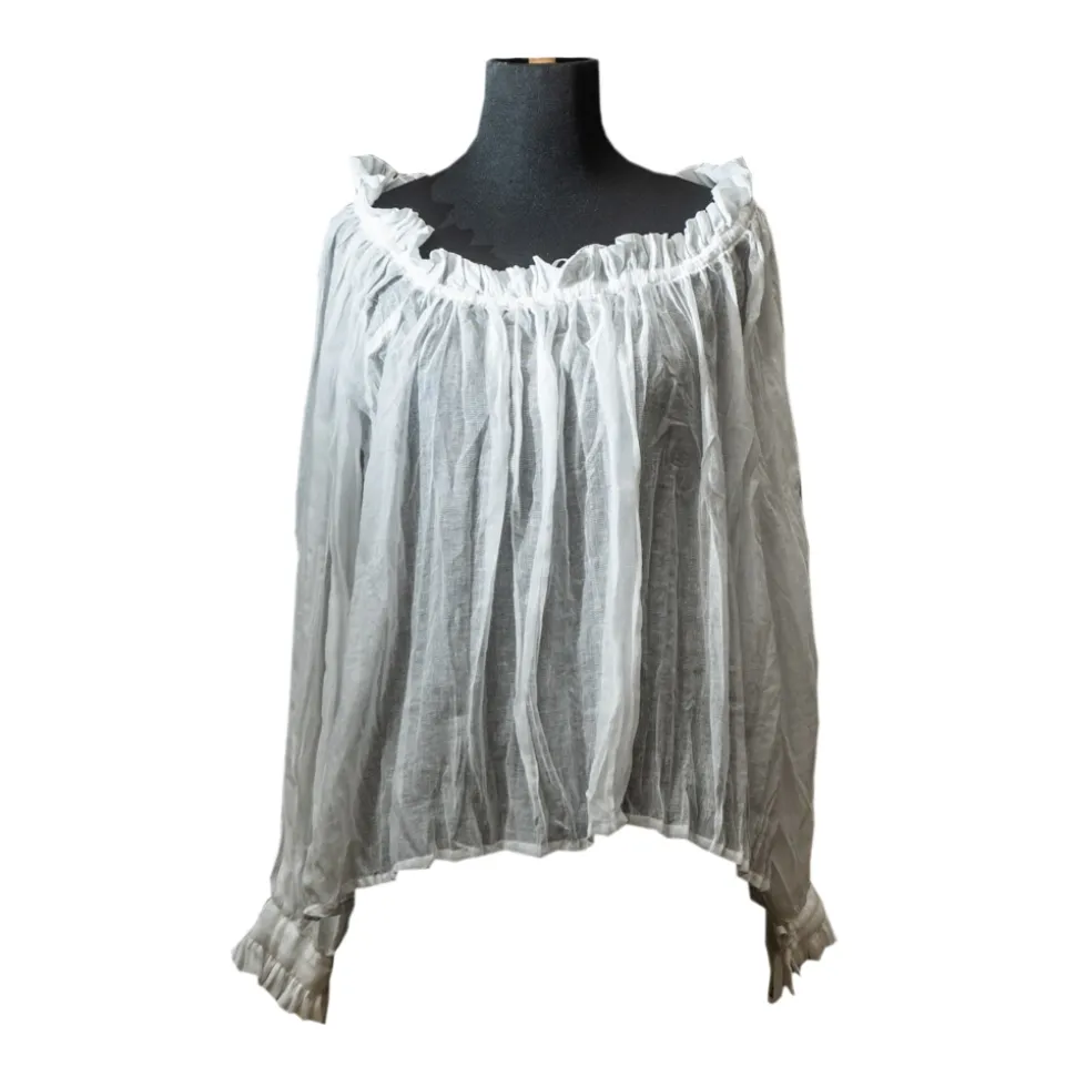 Women’s Carmen cut cotton gauze shirt, with drawstring in shoulder lap, long sleeve with drawstring closure.