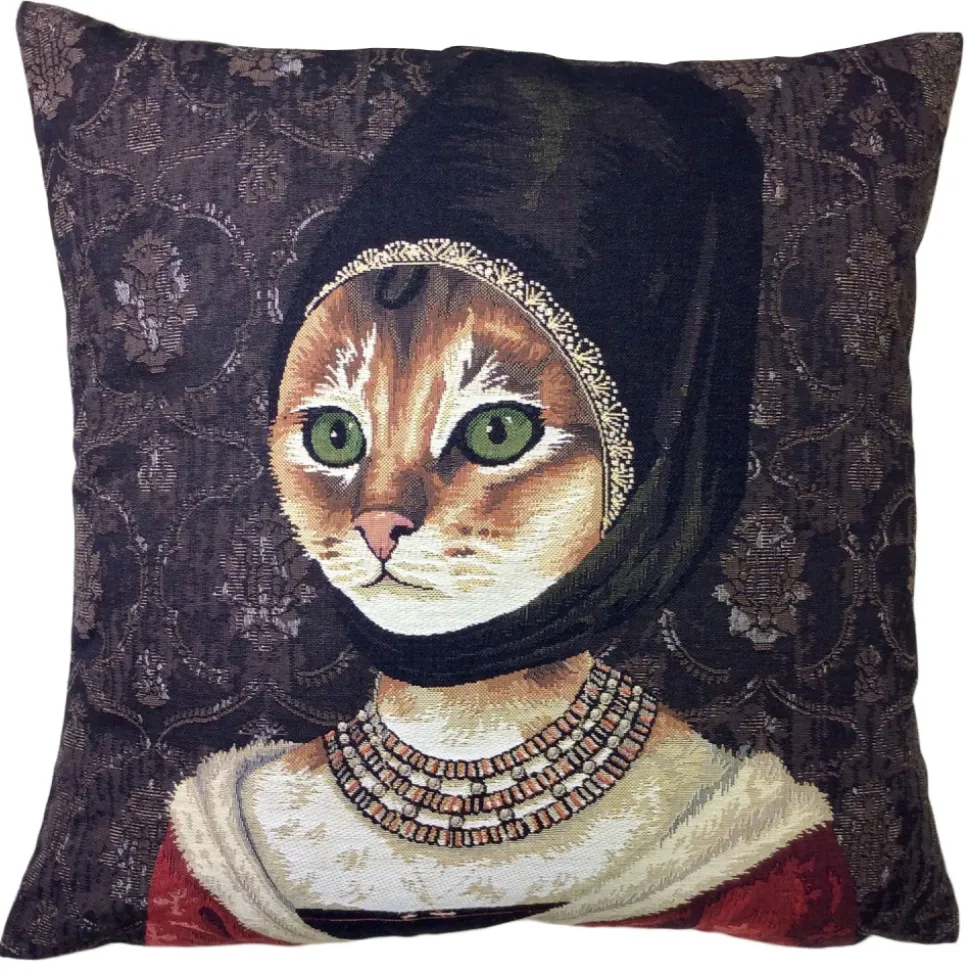 Cotton cushion with historical references to the portrait of a girl.