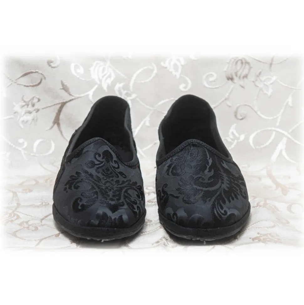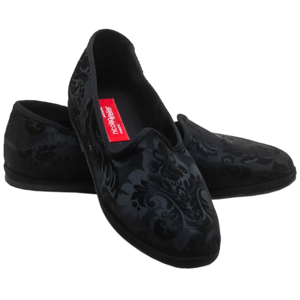 Nicolao Atelier – Furlana Slipper in Damask – Black Color Woman – Shoe – Made in Italy – Luxury Exclusive Collection