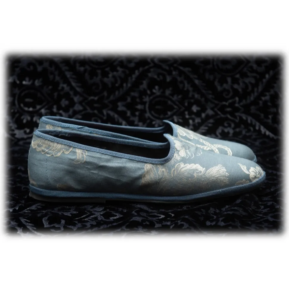 Nicolao Atelier – Furlana Slipper in Damask – Blue Color Woman – Shoe – Made in Italy – Luxury Exclusive Collection