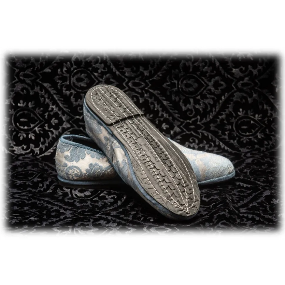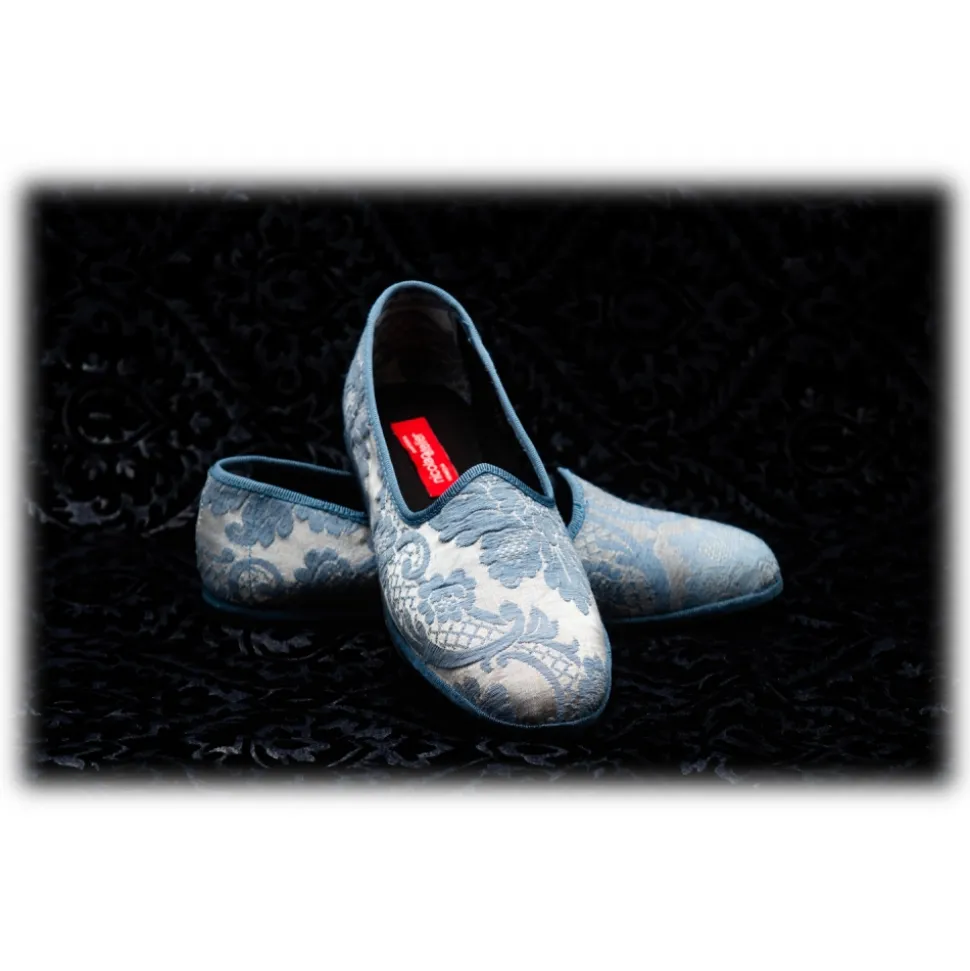Nicolao Atelier – Furlana Slipper in Damask – Celeste Color Woman – Shoe – Made in Italy – Luxury Exclusive Collection
