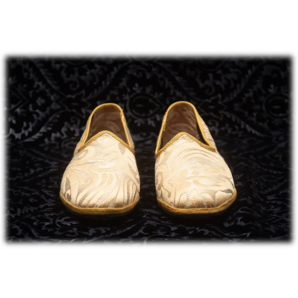 Nicolao Atelier – Furlana Slipper in Damask – Gold Color Man – Shoe – Made in Italy – Luxury Exclusive Collection