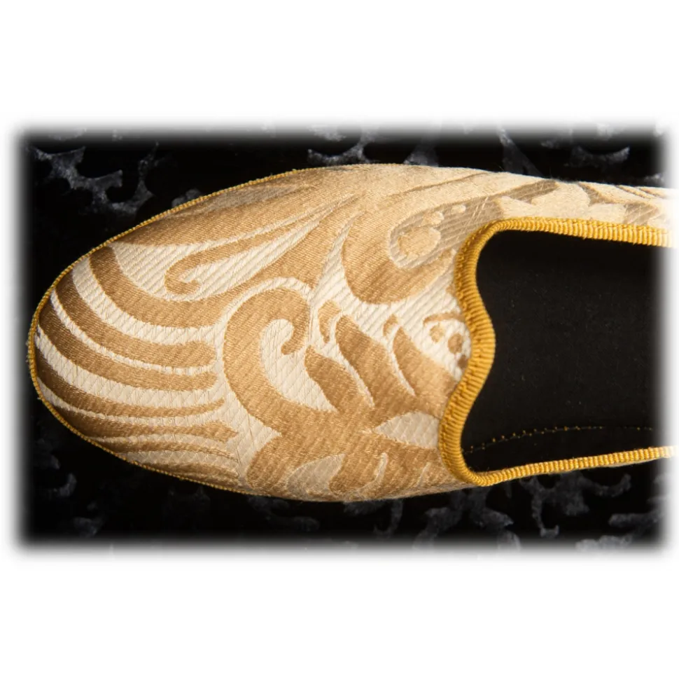 Nicolao Atelier – Furlana Slipper in Damask – Gold Color Woman – Shoe – Made in Italy – Luxury Exclusive Collection