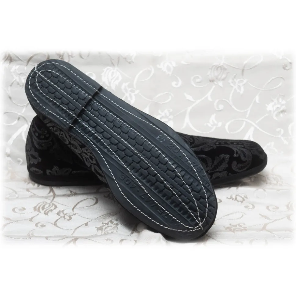Nicolao Atelier – Furlana Slipper in Velvet – Black Damask Color Man – Shoe – Made in Italy – Luxury Exclusive Collection