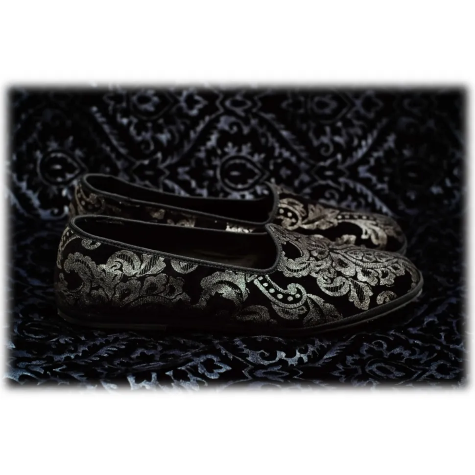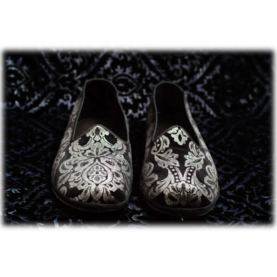 Nicolao Atelier – Furlana Slipper “Venezia” in Silk Velvet – Silver Color Woman – Shoe – Made in Italy – Luxury Exclusive Collection