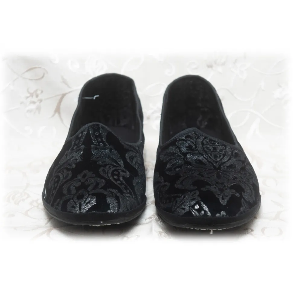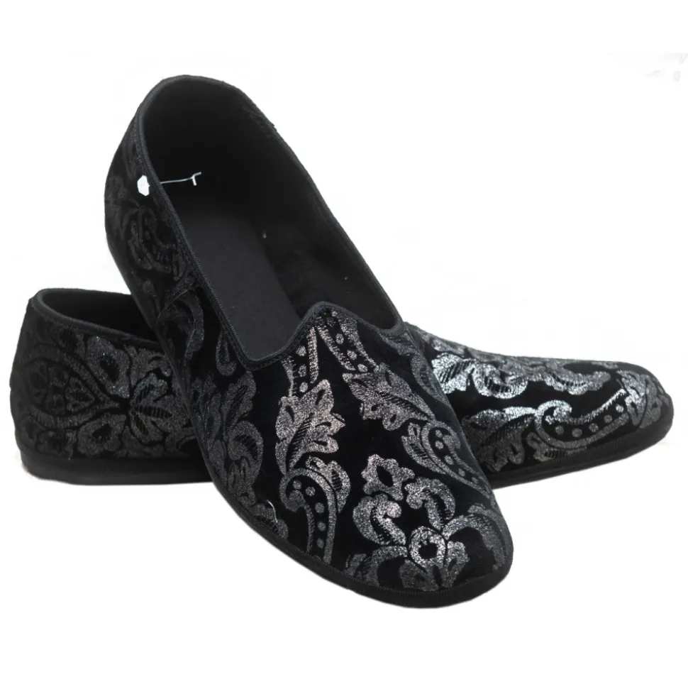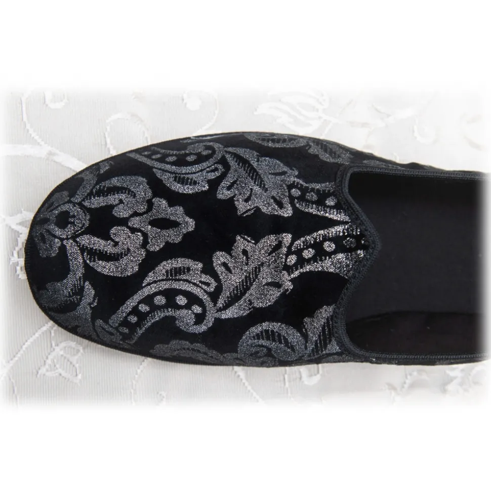 Nicolao Atelier – Furlana Velvet Slipper – Color Black Silver Damask Man – Shoe – Made in Italy – Luxury Exclusive Collection