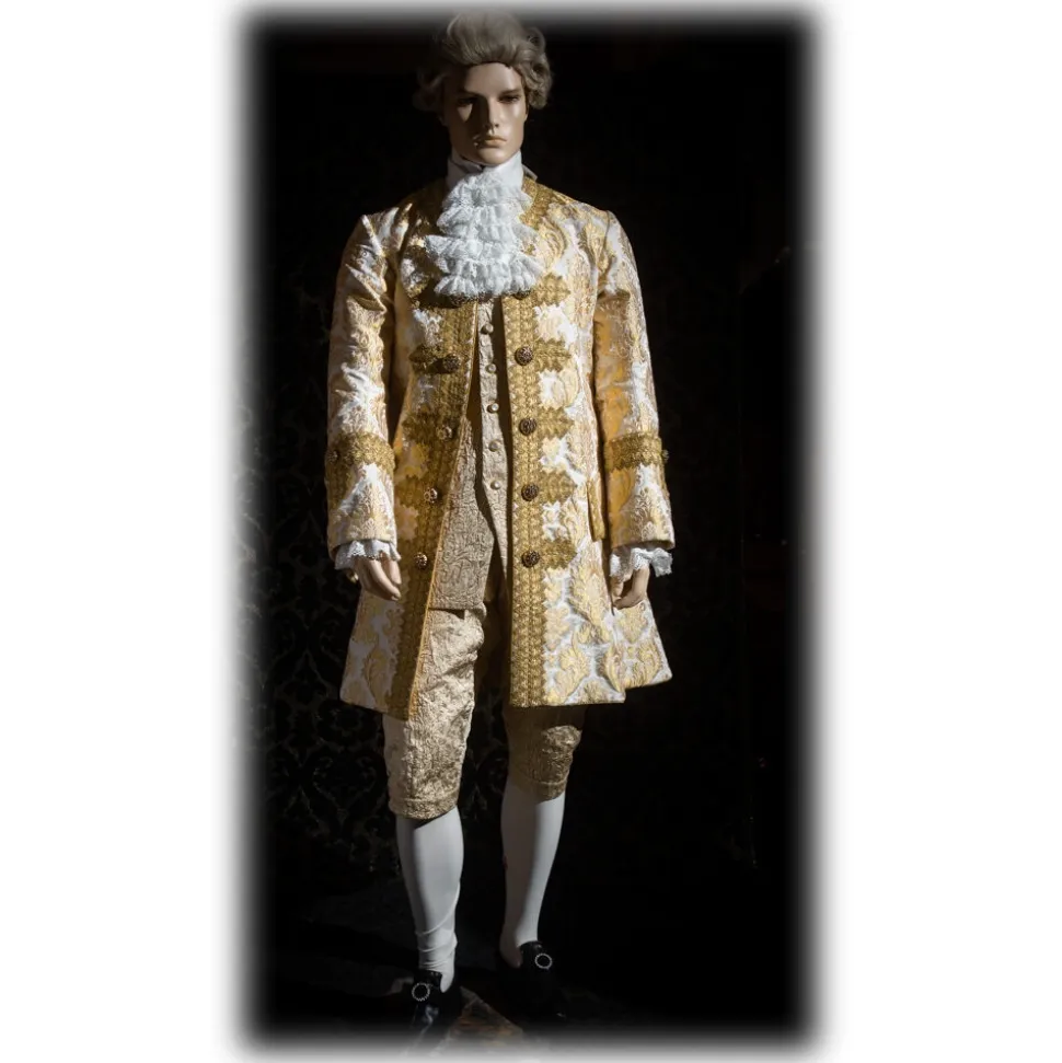 Nicolao Atelier – Historical Cut Costume – Man suit in Lampasso Gold-White – Historical Costume – 1700 – Suit – Made in Italy – Luxury Exclusive Collection