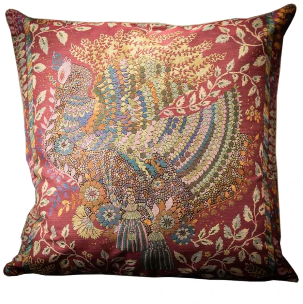 Nicolao Atelier – Rubelli Silk Cushion – Peacock Motif – Pillow – Made in Italy – Luxury Exclusive Collection