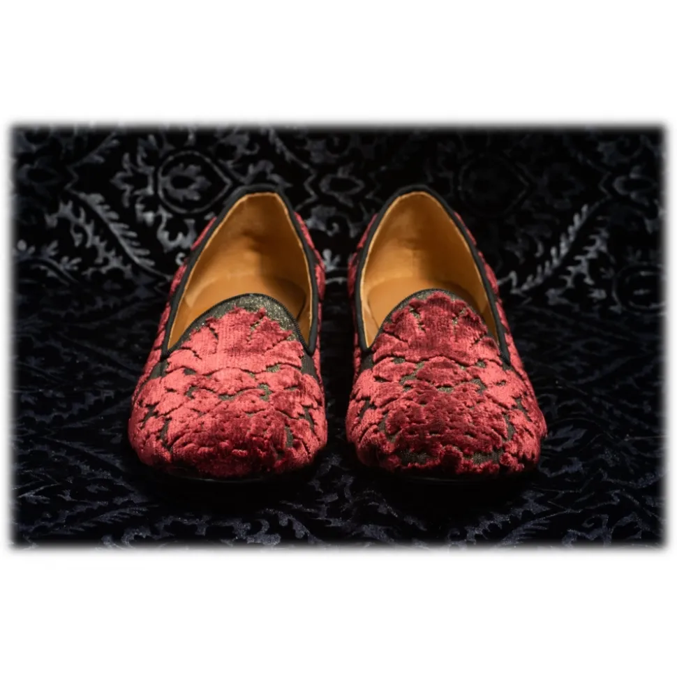 Nicolao Atelier – Silk Velvet Brocade Slipper – Bordeaux Embossed Motif Woman – Shoe – Made in Italy – Luxury Exclusive Collection