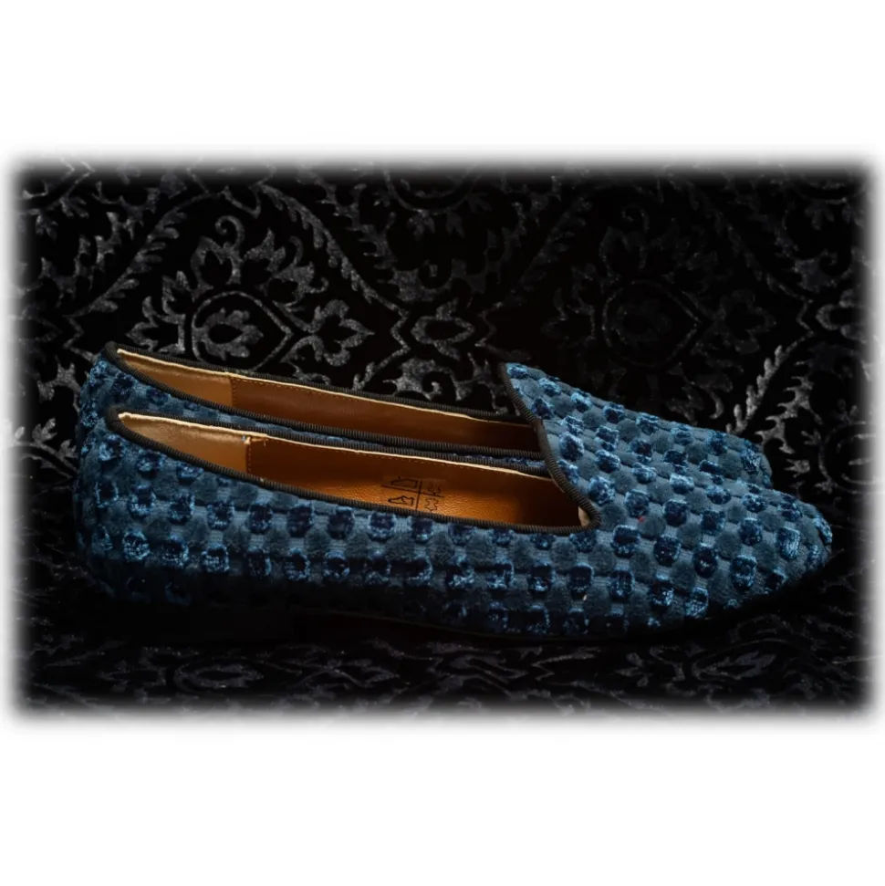 Nicolao Atelier – Velvet Slipper Sock – Light Blue Checkered Color with Embossed Pattern Woman – Shoe – Made in Italy – Luxury Exclusive Collection