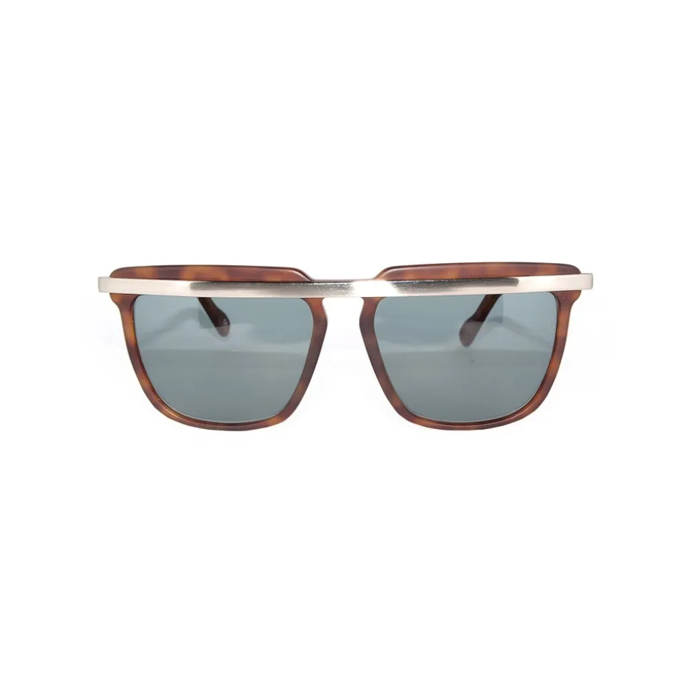 No Logo Fabrizio Corona Sunglasses with a sophisticated design. The front is in acetate like the terminals. The front bar and the temples are in metal. Available in 3 colors also with green lenses. Unisex model.