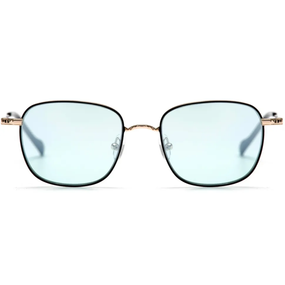 Rectangular sunglasses. New No Logo Eyewear model, discover the enveloping line of the 81016 rectangular model ideal for both him and her. The glasses are available in three color variants, blue mirrored lens, gold mirror and polarized black smoke.