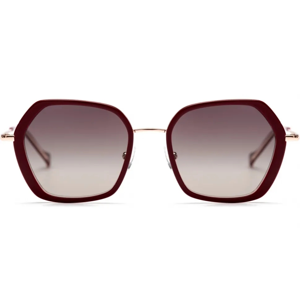 Pentagon shape cat-eye sunglasses. No Logo proposes in a contemporary and modern key, a vintage-style look made current by the careful choice of colors and materials. Discover the 3 proposals of the 81033 model available with shaded black, brown and gold mirrored lenses combined with the tortoiseshell frame.