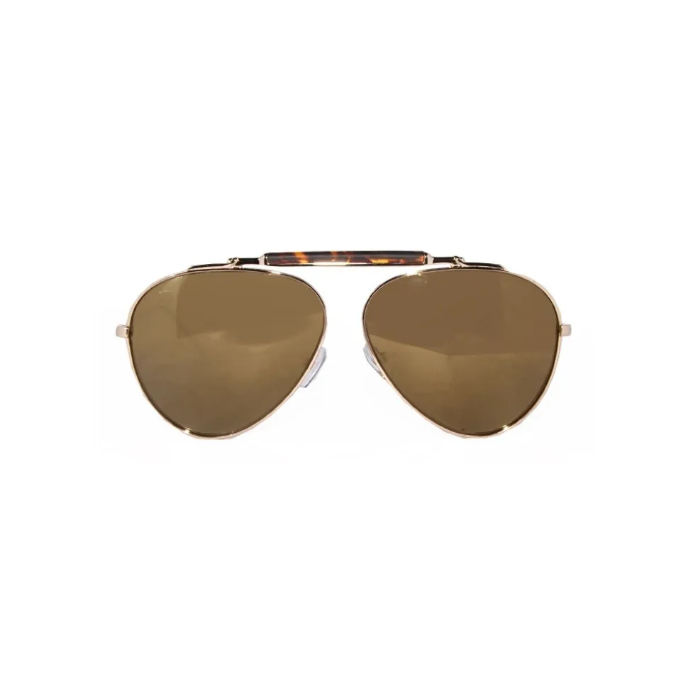 The model is available in 6 color variants. The first proposal is the model with an hour frame and shaded gold mirrored lenses. The second model has the frame in now with smoke black lenses. The third proposal is the model with blue mirrored lenses and gold frame. The fourth model features shaded silver mirrored lenses with a gunmetal frame. The fifth proposal has a gunmetal frame and brown lenses. The last proposal is fitted with mirrored gold lenses with a gold metal frame.