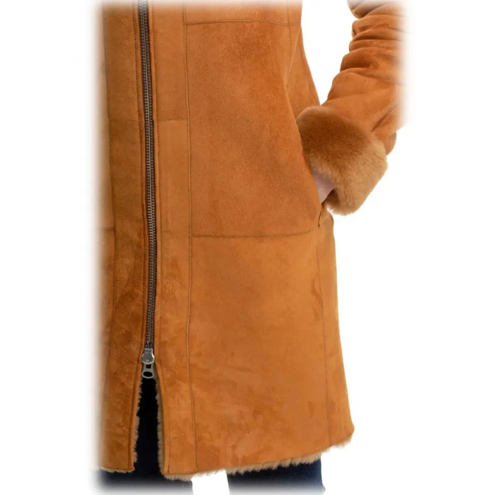 Both supple and comfortable, the CINDER coat is inspired by a timeless vintage style. Assembled in patchwork, its outer face mixes two types of wool which bring a touch of originality to the whole and maximum softness. True to its trademark, Noblesse Oblige has also provided a reversible nubuck face to allow you to play on 2 styles in one according to your desires. In a very beautiful mustard color, it is a ¾ coat that will keep you comfortably warm in winter and always with that touch of chic that makes the difference.