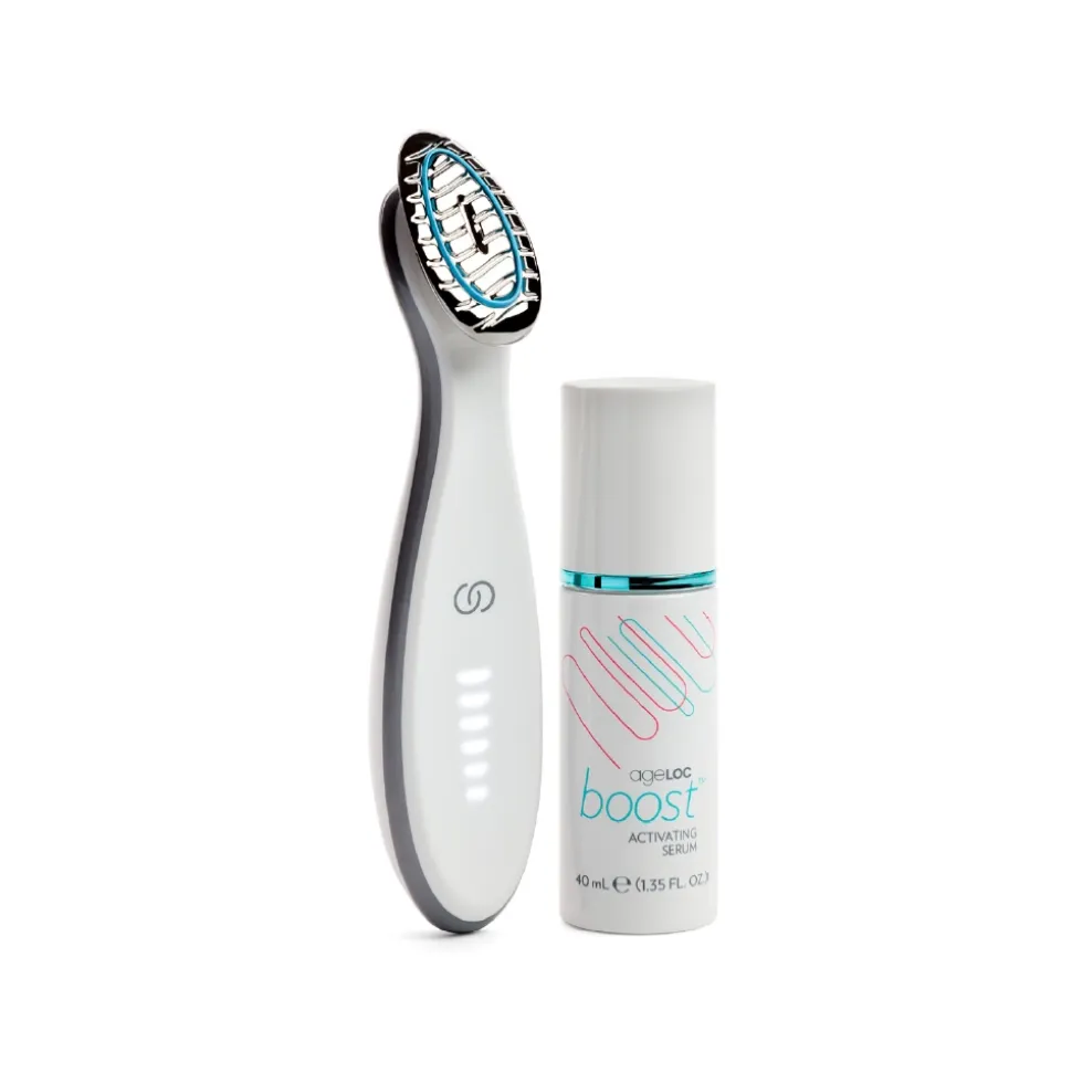 The second key difference is how they work. ageLOC Galvanic Spa uses direct current to deliver product ingredients to the skin, while ageLOC Boost uses variable pulsed microcurrents to optimize and activate the skin, revealing a youthful complexion.