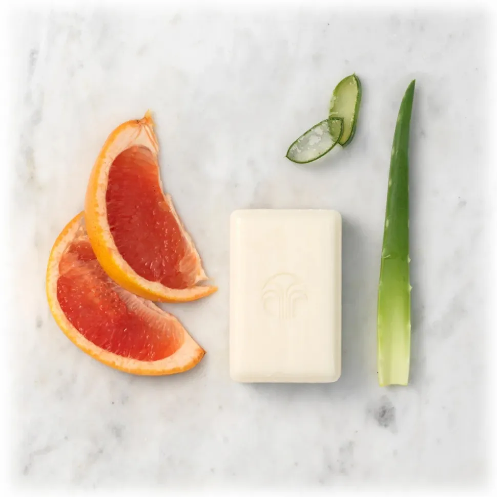 Don’t let your skin dry out as you cleanse! This soap-free cleansing bar is ideal for your face and body and moisturises your skin with aloe vera and jojoba as you wash. Natural grapefruit extract leaves the skin with a fresh scent. Available individually in a white plastic case or in a refill pack of five.