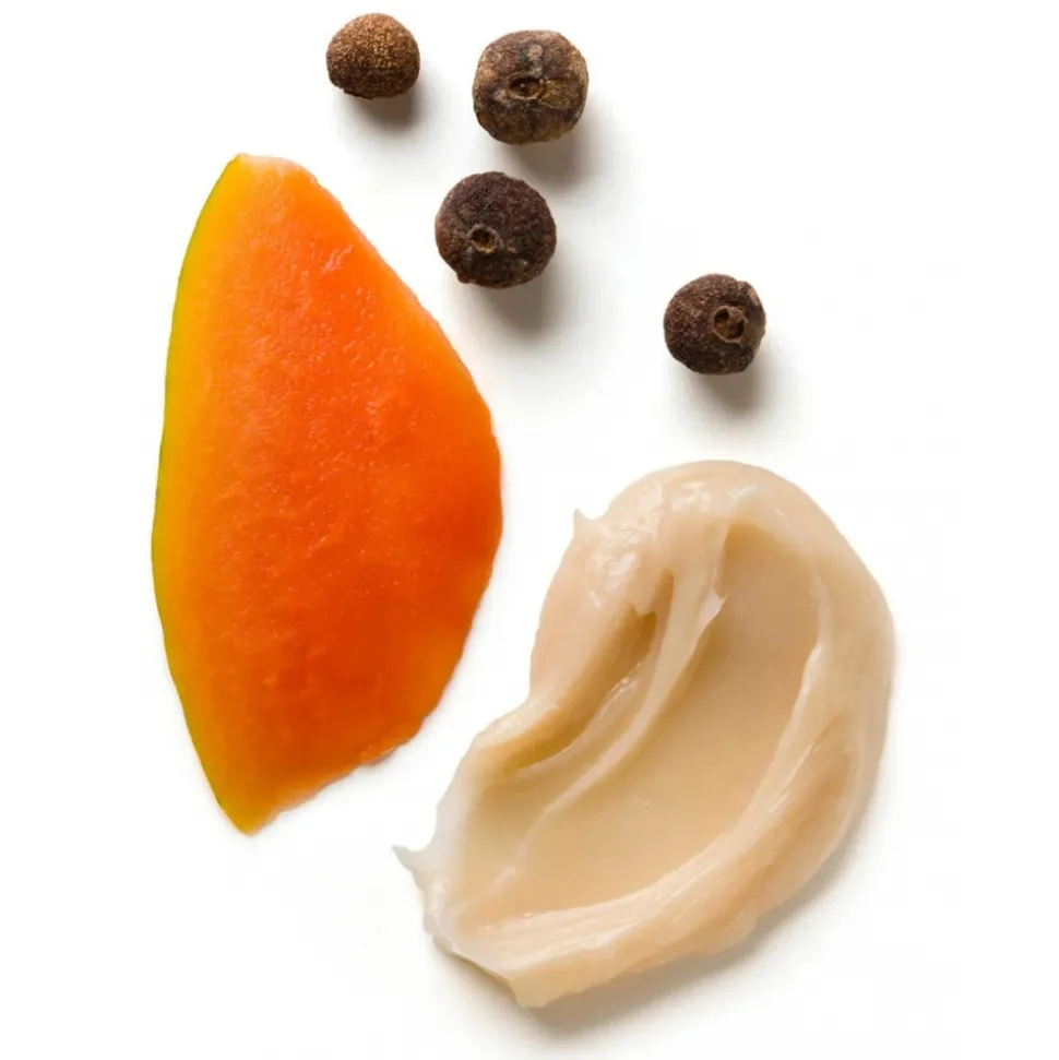 Aqua, Urea, Glycerin, Stearyl Alcohol, Cetyl Alcohol, Octyldodecyl Neopentanoate, Trioctyldodecyl Citrate, Undecylenic Glycerides, Glyceryl Stearate, PEG-100 Stearate, Cetyl Phosphate, PPG-3 Benzyl Ether Myristate, Argilla, Dimethicone, Lauryl Laurate, Butylene Glycol, Caprylyl Glycol, Octyldodecanol, Papain, Pimenta Officinalis Fruit Extract, Xanthan Gum, Arachidyl Alcohol, Polysorbate 20, Myristyl Alcohol, Caramel, Carbomer, Sodium Carbomer, Sodium Chloride, Quartz, Tetrasodium EDTA, Sodium Hydroxide, Phenoxyethanol, Chlorphenesin, Sorbic Acid, Methylparaben, Benzoic Acid, Eugenol.