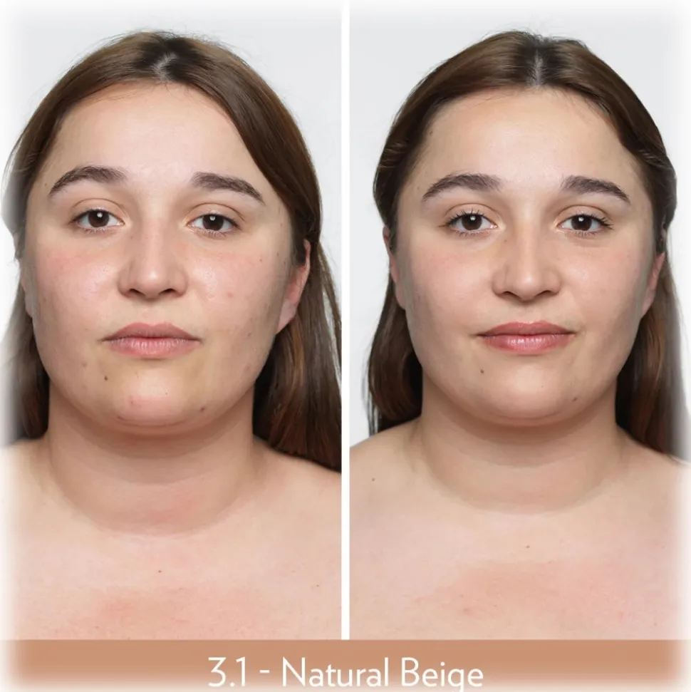 Compare three shades next to each other along the profile of the chin, leaving some space between them. Blend and check which one is the most suitable.